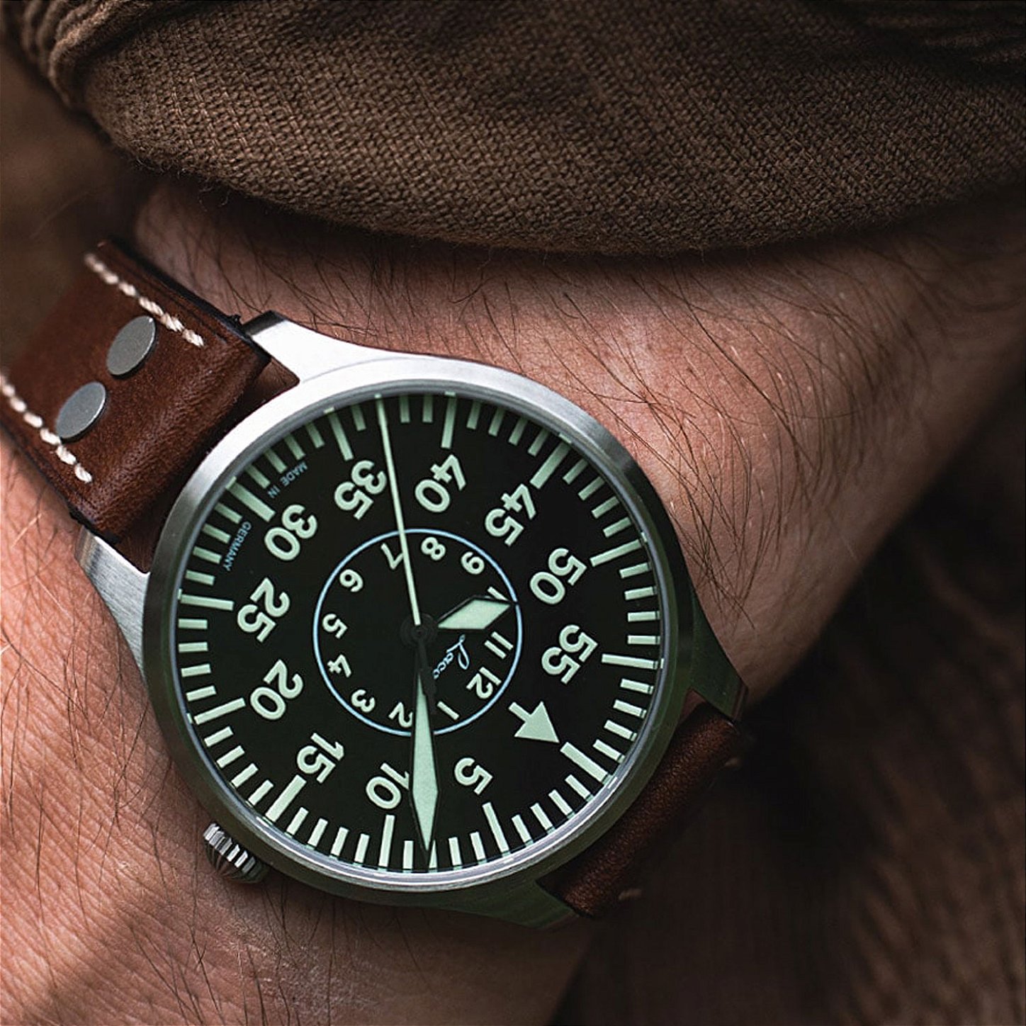Inspirado na tradição alemã de navegação aérea, este flieger une legibilidade máxima e elegância minimalista. Perfeito para quem aprecia design funcional sem ostentação. Ideal para profissionais criativos, entusiastas de aviação vintage e admiradores de engenharia alemã - combina com jaqueta de couro, camisa casual, estilo casual-chique e a filosofia de que menos é mais.
