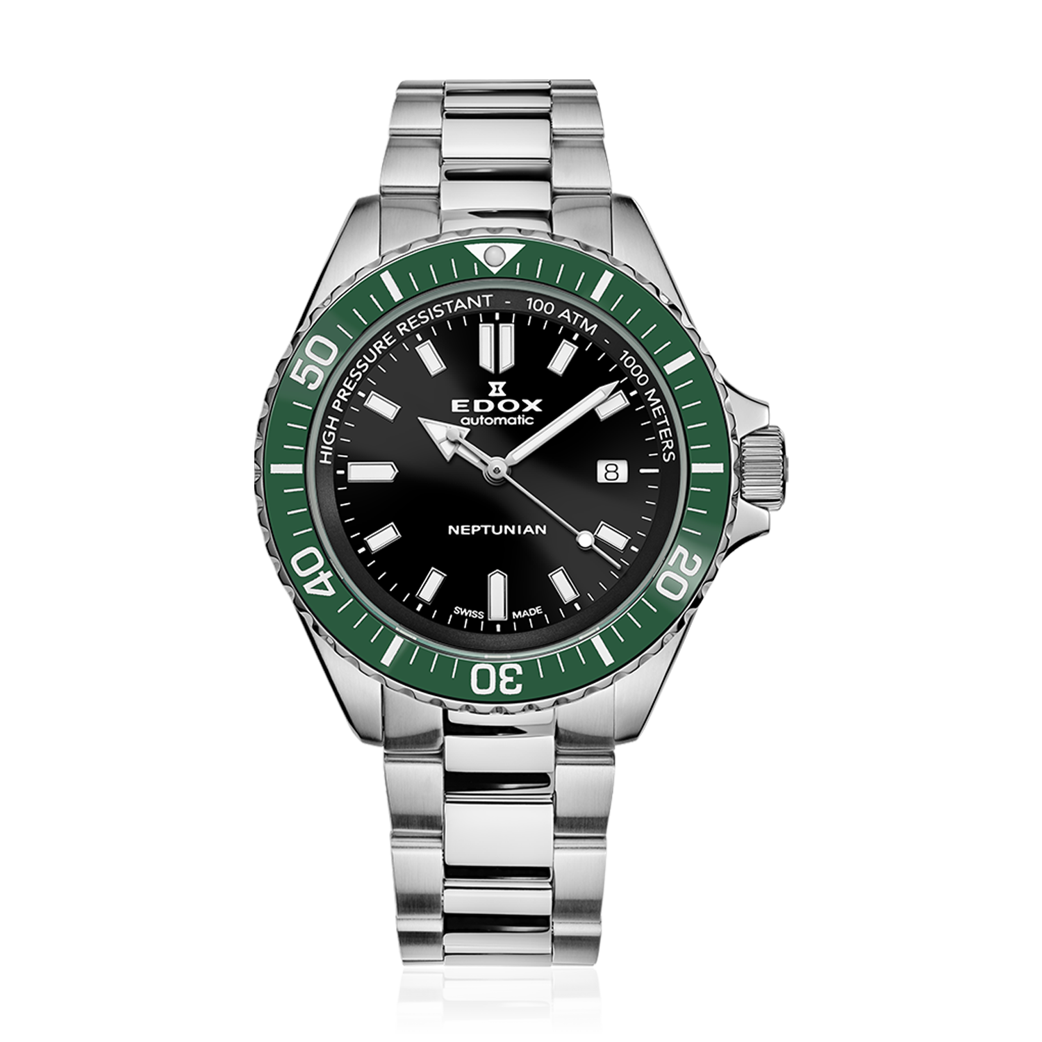 O Neptunian carrega o DNA dos icônicos relógios SkyDiver que equiparam mergulhadores pioneiros há cinco décadas. A Edox, reconhecida como "Water Champions" desde 1884, transferiu todo conhecimento acumulado em competições aquáticas e exploração submarina para criar este mergulhador de nova geração.