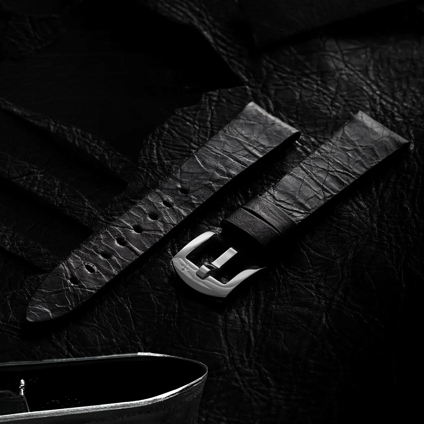 A pulseira do Redentore Historia Temporis é confeccionada com couro antigo que passa por um meticuloso processo de restauração artesanal. Utilizando aditivos naturais, o couro recupera sua maciez original while preservando as rugas e imperfeições acumuladas ao longo dos anos - características que narram sua própria história temporal.