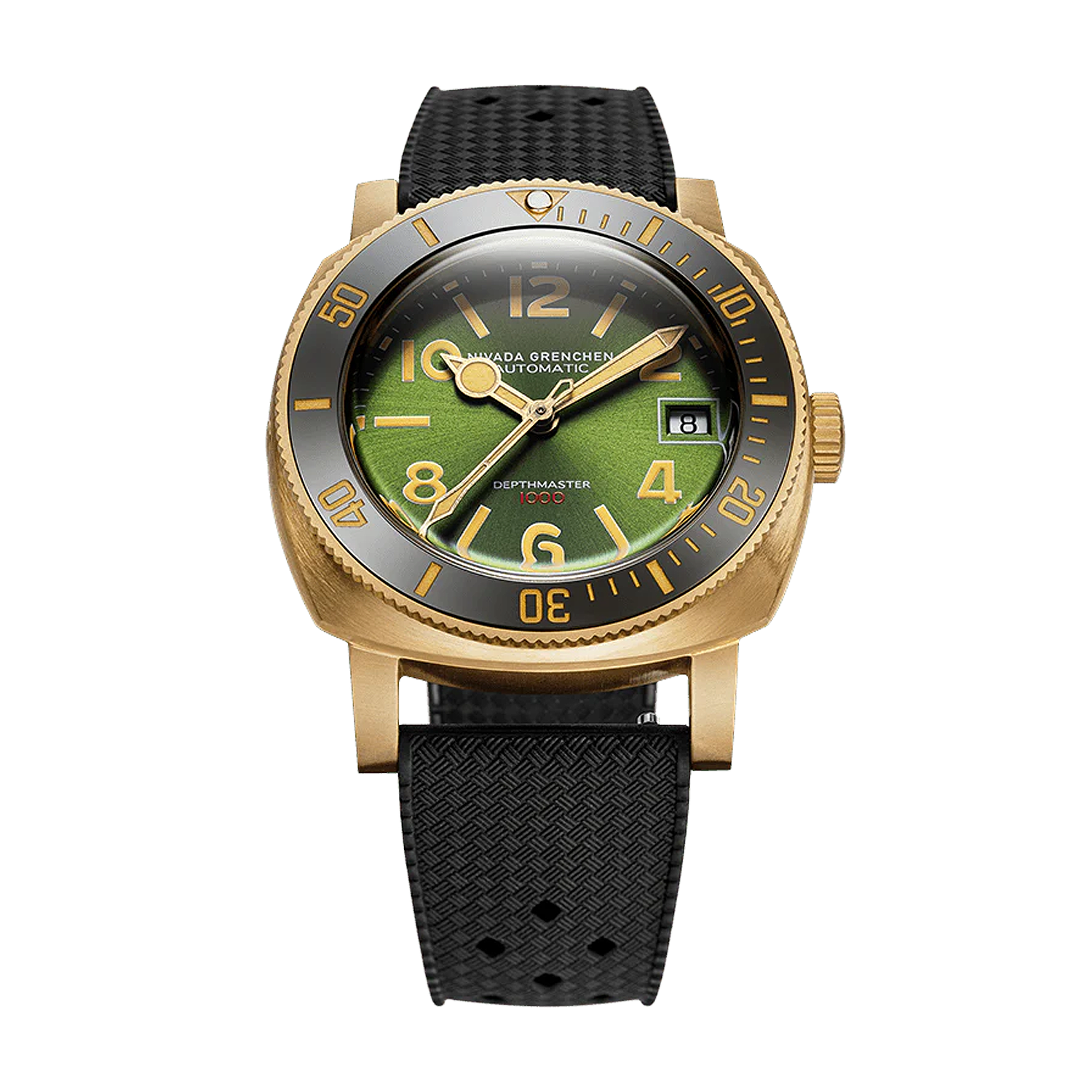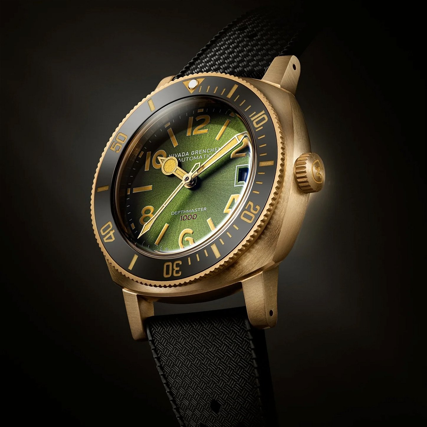 Para seu último lançamento, a Nivada Grenchen desenvolveu uma versão de bronze do Depthmaster, com uma moldura de cerâmica, não apenas contente com o fundo do mar, mas também desfrutando do mergulho urbano. Versátil, faz a transição do mar para a terra e adorna o pulso com elegância.