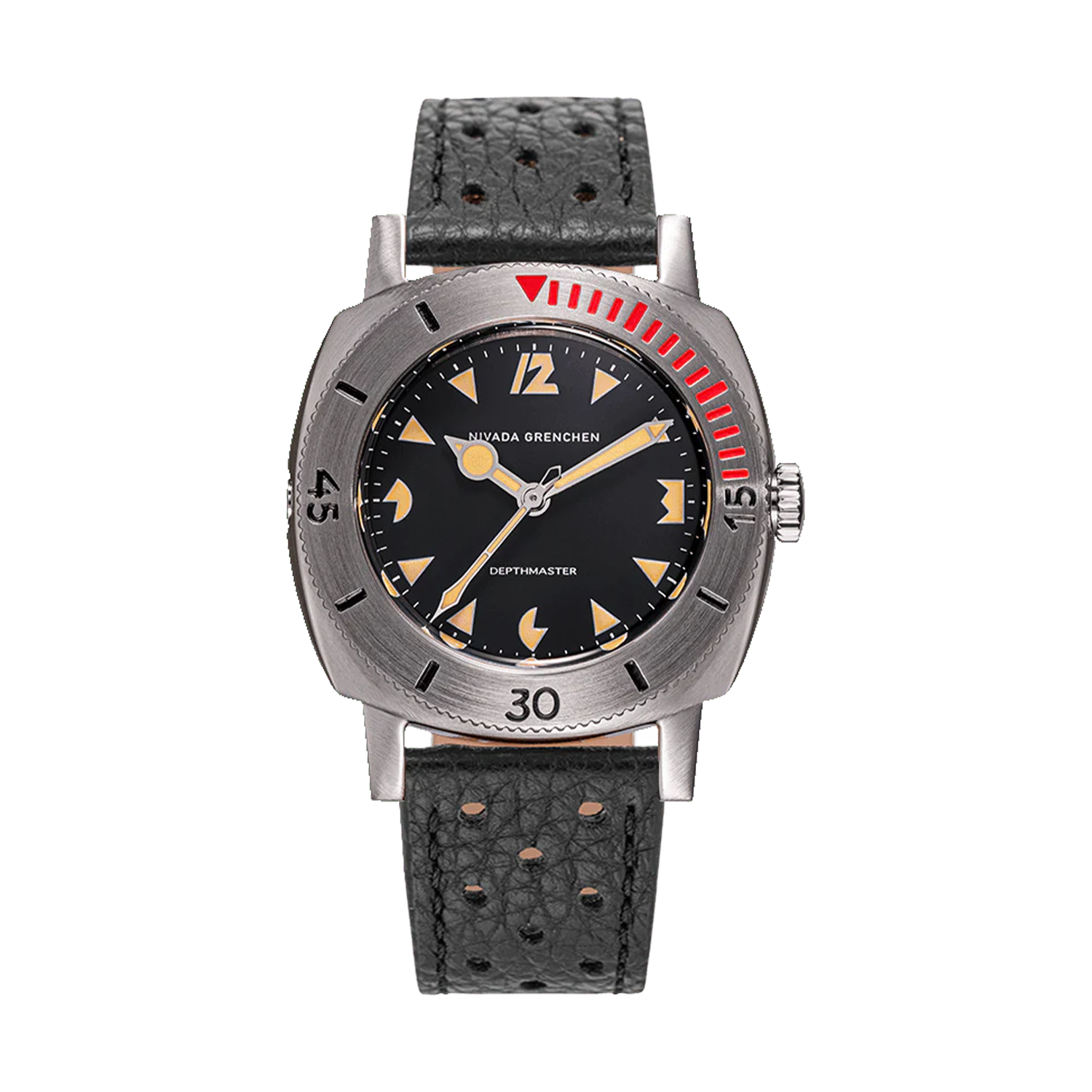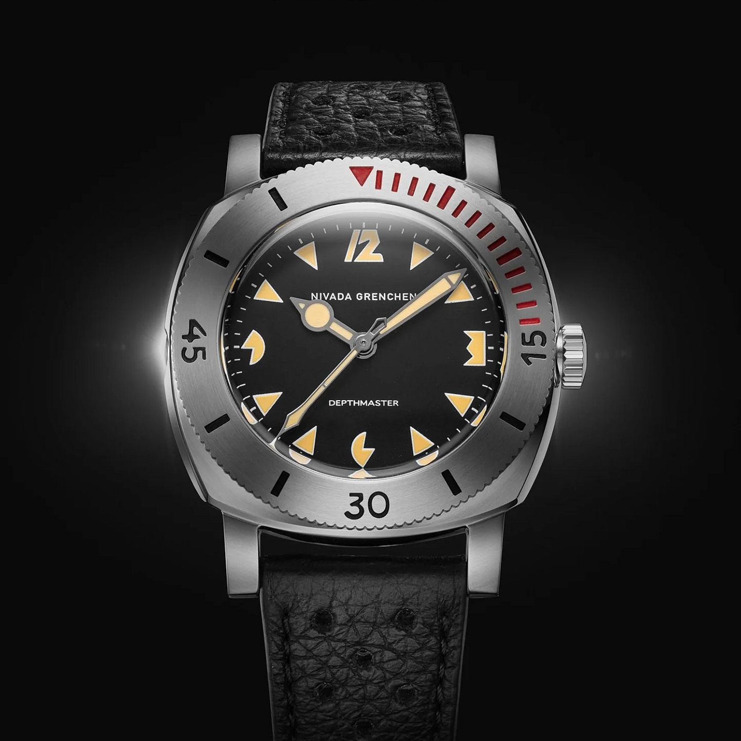 Apelidado de "Pac-Man" por seus marcadores Art Déco únicos, o Nivada Grenchen Depthmaster é uma lenda entre os relógios de mergulho. Lançado nos anos 60, foi um dos primeiros relógios do mundo a atingir a marca de 1000 metros de resistência à água.