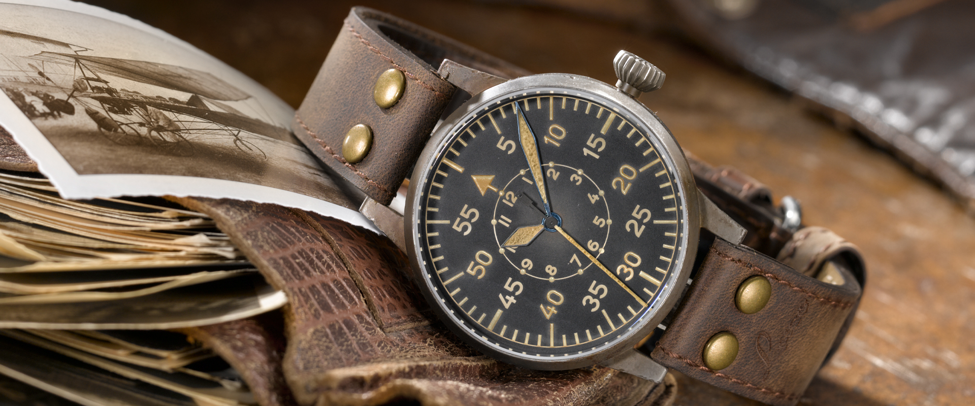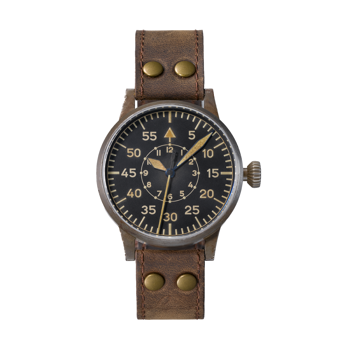 A Laco, uma das cinco manufaturas originais que produziam para a Luftwaffe, resgata essa herança técnica no Erbstück. Cada peça envelhecida artesanalmente não apenas imita a aparência vintage, mas carrega o espírito de funcionalidade absoluta que caracterizava os fliegers originais - onde cada segundo contava e a legibilidade podia salvar vidas.