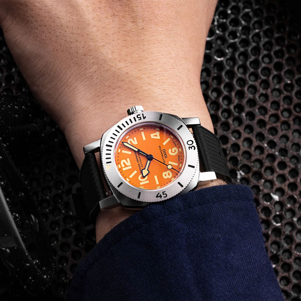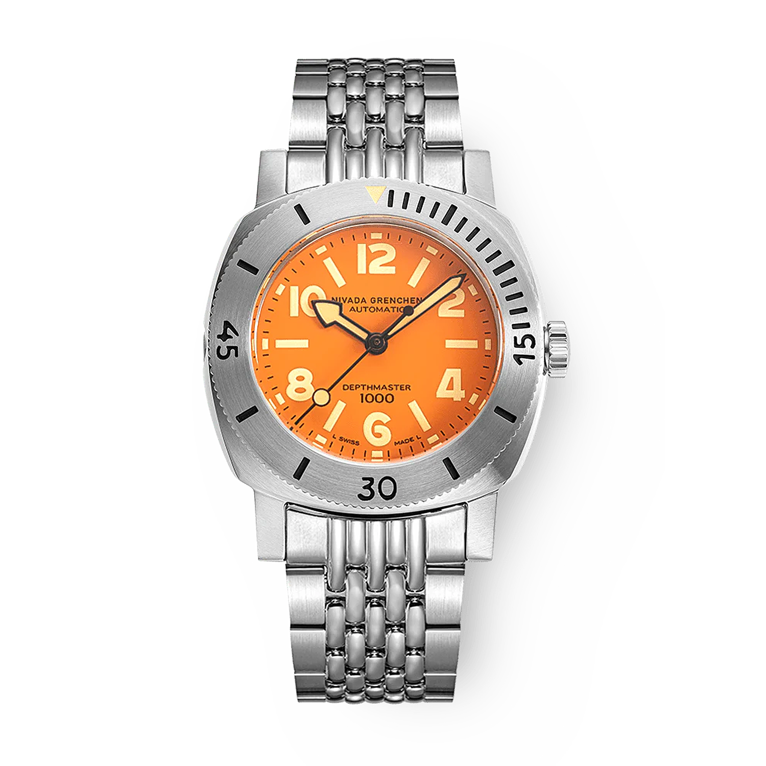 O Nivada Grenchen Orange Depthmaster revive um capítulo ousado na história do relógio de mergulho. Originalmente introduzido na década de 1960, o Depthmaster foi um dos primeiros relógios a atingir uma classificação de resistência à água de 1.000 metros, estabelecendo um novo padrão para relógios de mergulho profissionais. Esta iteração moderna presta homenagem ao seu antecessor enquanto incorpora avanços contemporâneos.
