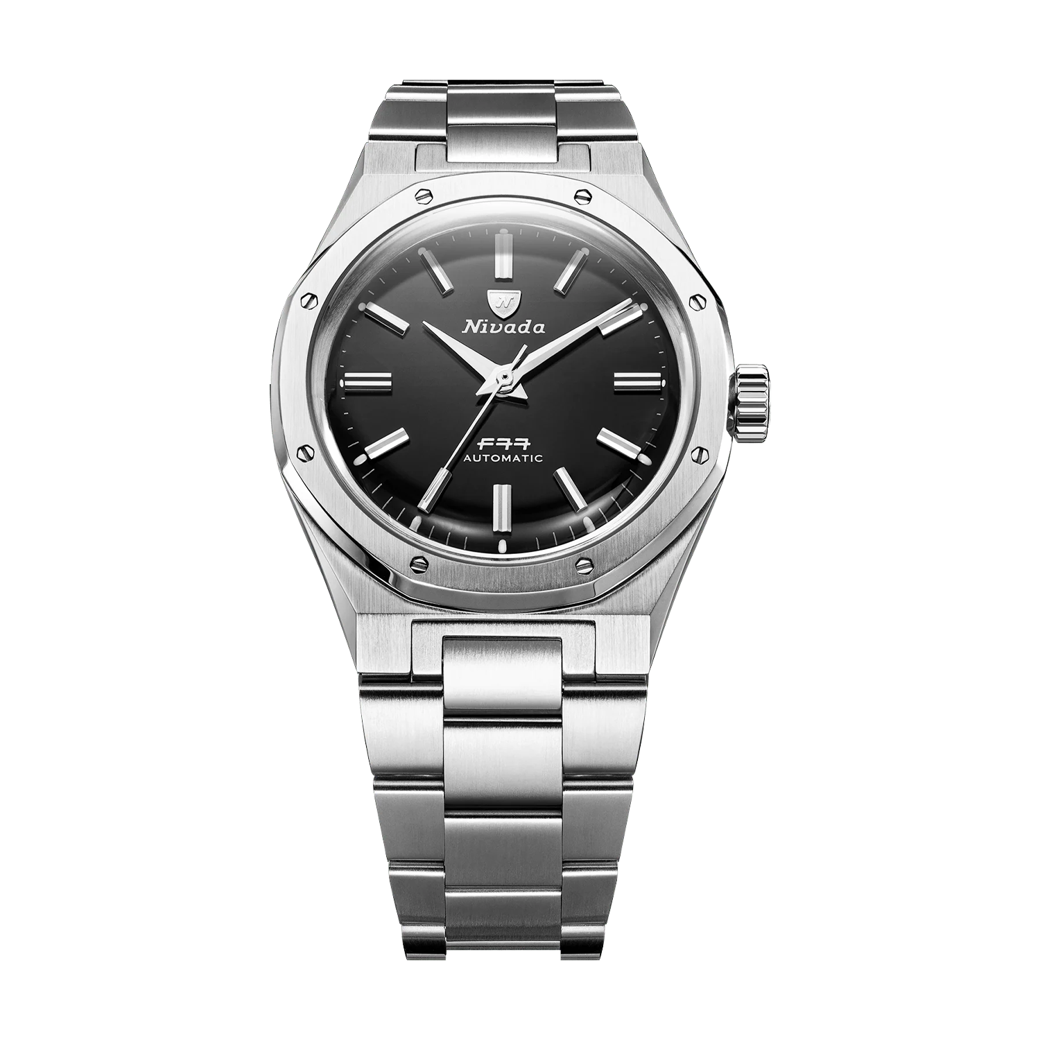 Feita inteiramente de aço inoxidável 316L, esta versão destaca a geometria limpa da caixa octogonal e da pulseira integrada através de uma mistura de acabamentos escovados e polidos que capturam a luz de todas as maneiras certas. Em seu centro, um mostrador de ônix preto natural fornece um contraste dramático com os ponteiros Dauphine prateados e índices aplicados. Os detalhes sutis do Super-LumiNova garantem a legibilidade, preservando a estética minimalista.