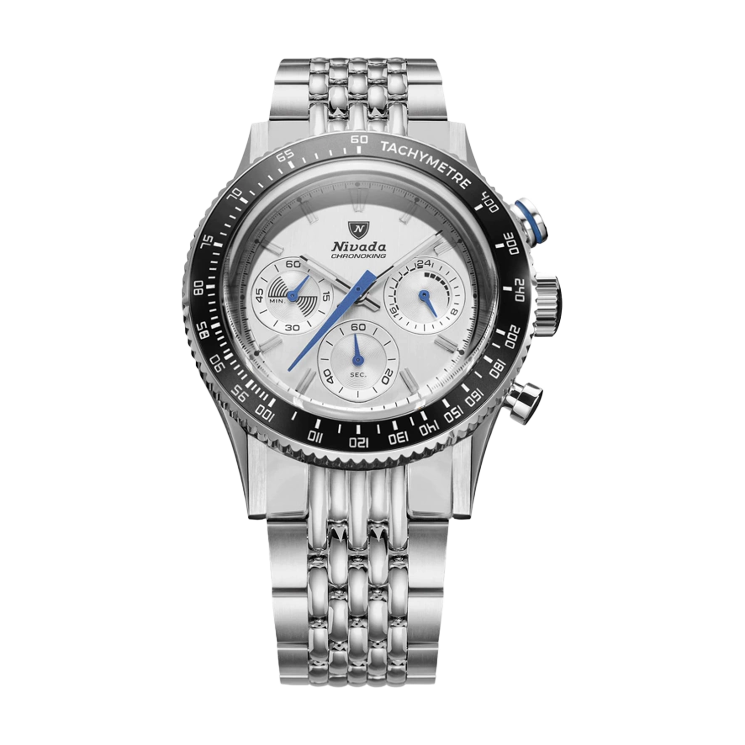A coleção Chronoking Racing celebra o espírito ousado dos cronógrafos dos anos 1970 com um toque fresco e divertido. Com cores vivas de mostrador, molduras intercambiáveis e uma robusta caixa de aço inoxidável de 38 mm, cada modelo combina charme vintage com versatilidade moderna. Em seu coração, o movimento TMI VK63 Mecaquartz montado na Suíça, combinando precisão de quartzo com a varredura suave de um cronógrafo mecânico.