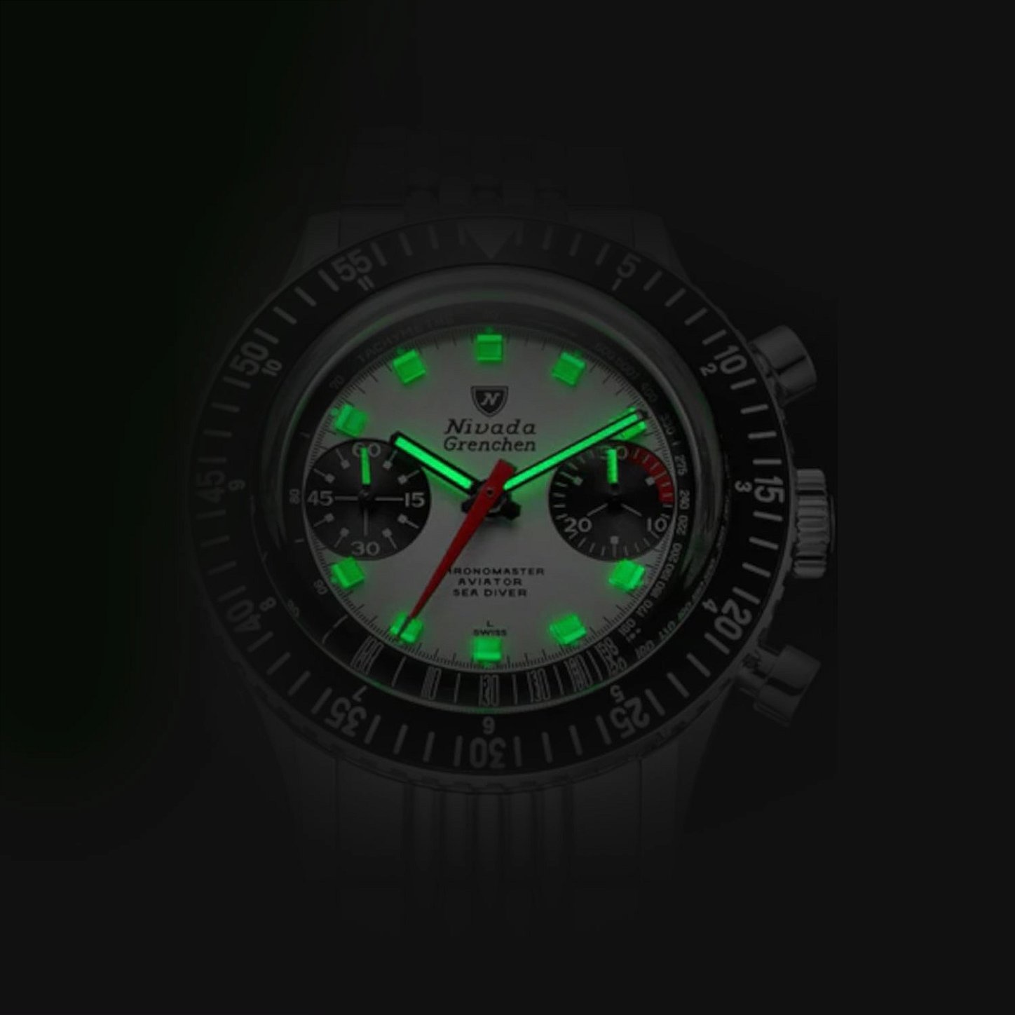 O Chronomaster Aviator Sea Diver é um dos relógios mais celebrados de Nivada Grenchen, um ícone de 1963 que capturou a era de ouro dos cronógrafos de ferramentas. Agora, com o novo tamanho de 41 mm, a lenda fica mais forte.