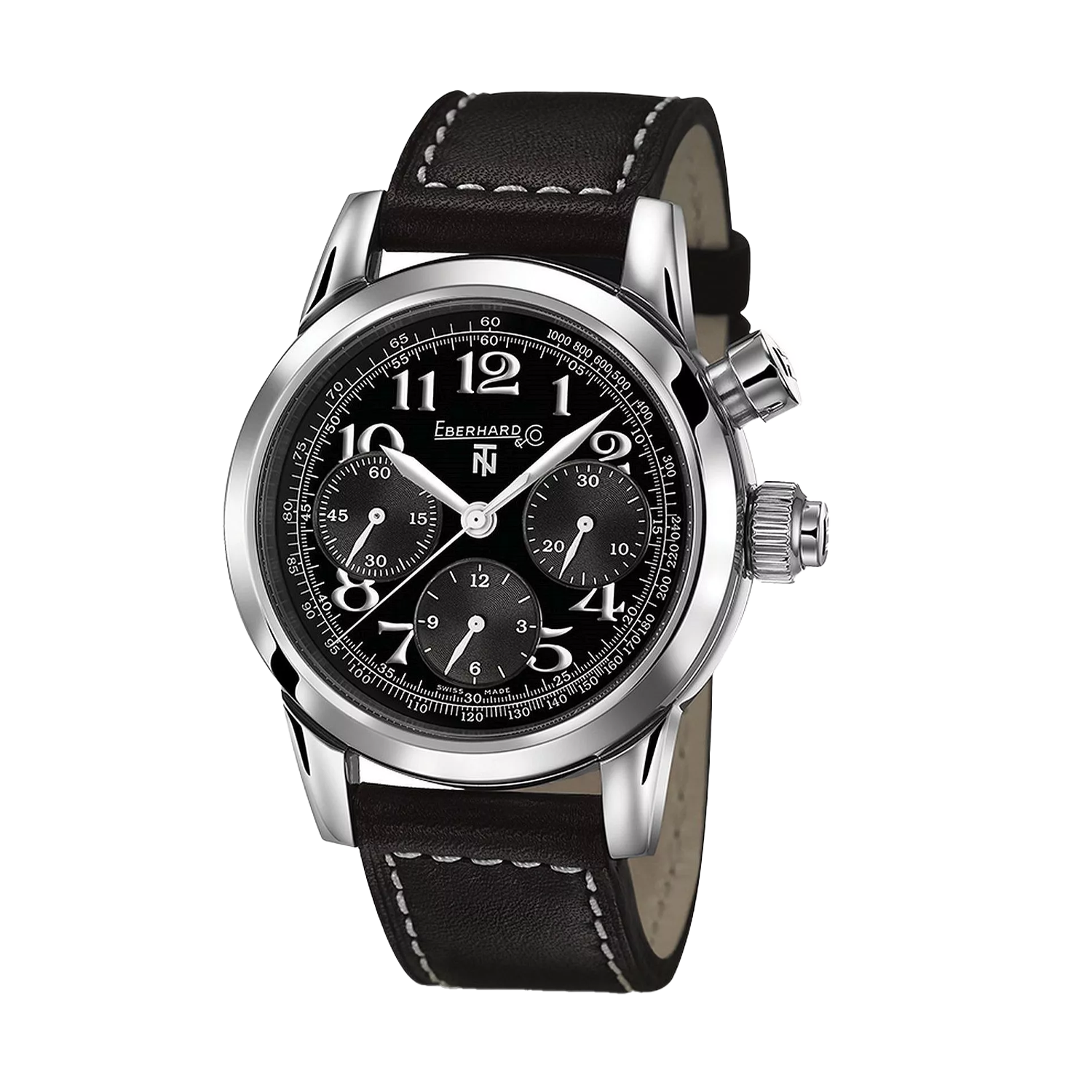 PULSANTE COAXIAL: o design exclusivo com o pulsante de start/stop integrado à coroa rememora os cronógrafos Eberhard dos anos 30, oferecendo ergonomia superior e estética única. Esta solução técnica permite operação intuitiva sem comprometer a vedação da caixa.