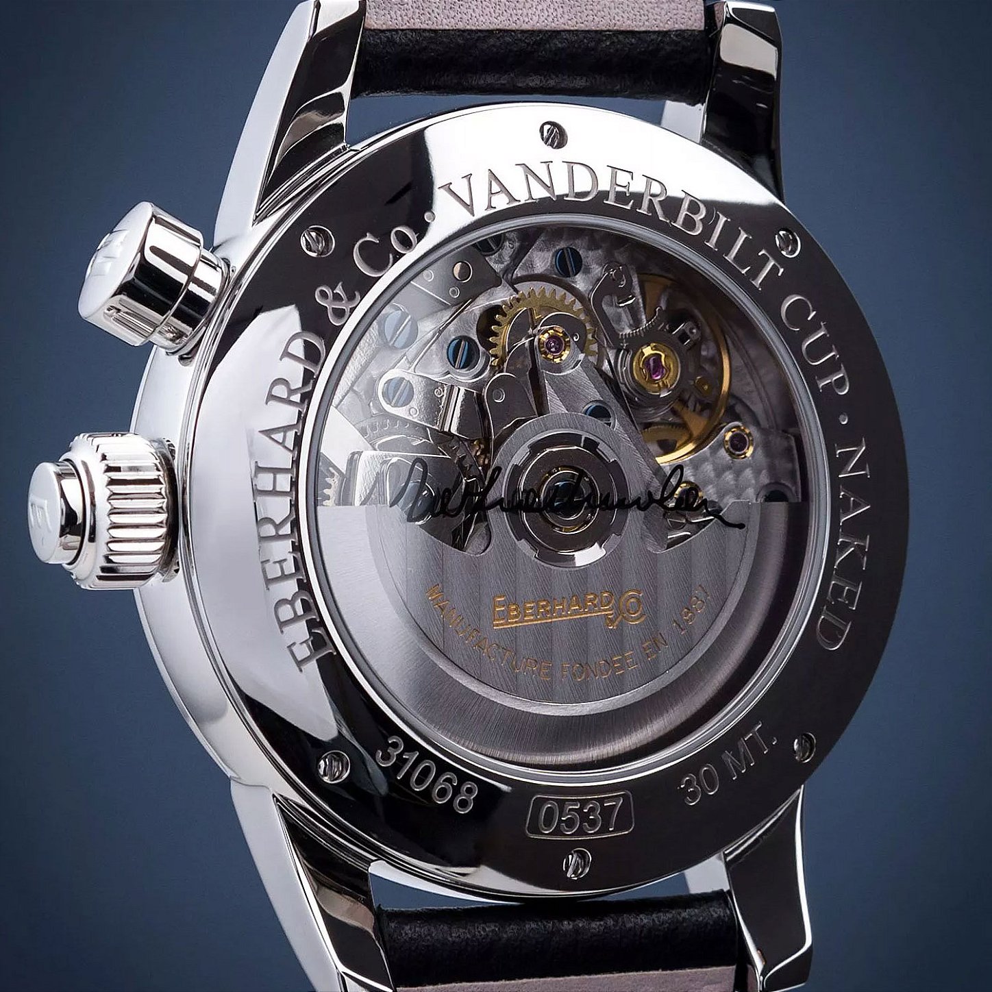 Tributo ao lendário piloto Tazio Nuvolari, o Vanderbilt Cup 42mm celebra a vitória histórica de 1936 em Long Island com um cronógrafo automático de alta performance. O mostrador preto com números árabicos brancos em relevo e escala taquimétrica base 1000 traduz a paixão pelos automobilismo em uma peça técnica e elegante. O exclusivo sistema de fundo duplo permite visualizar o movimento através do vidro safira com a assinatura do pilota gravada.