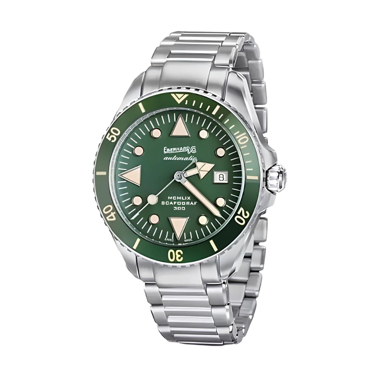 DESIGN TRIANGULAR ICÔNICO: os marcadores triangulares às 6, 9 e 12 horas são assinatura visual da linha MCMLIX e referência direta aos divers originais de 1959. Estes elementos distinguem imediatamente a coleção comemorativa dos demais modelos Scafograf, criando identidade única dentro do catálogo Eberhard.