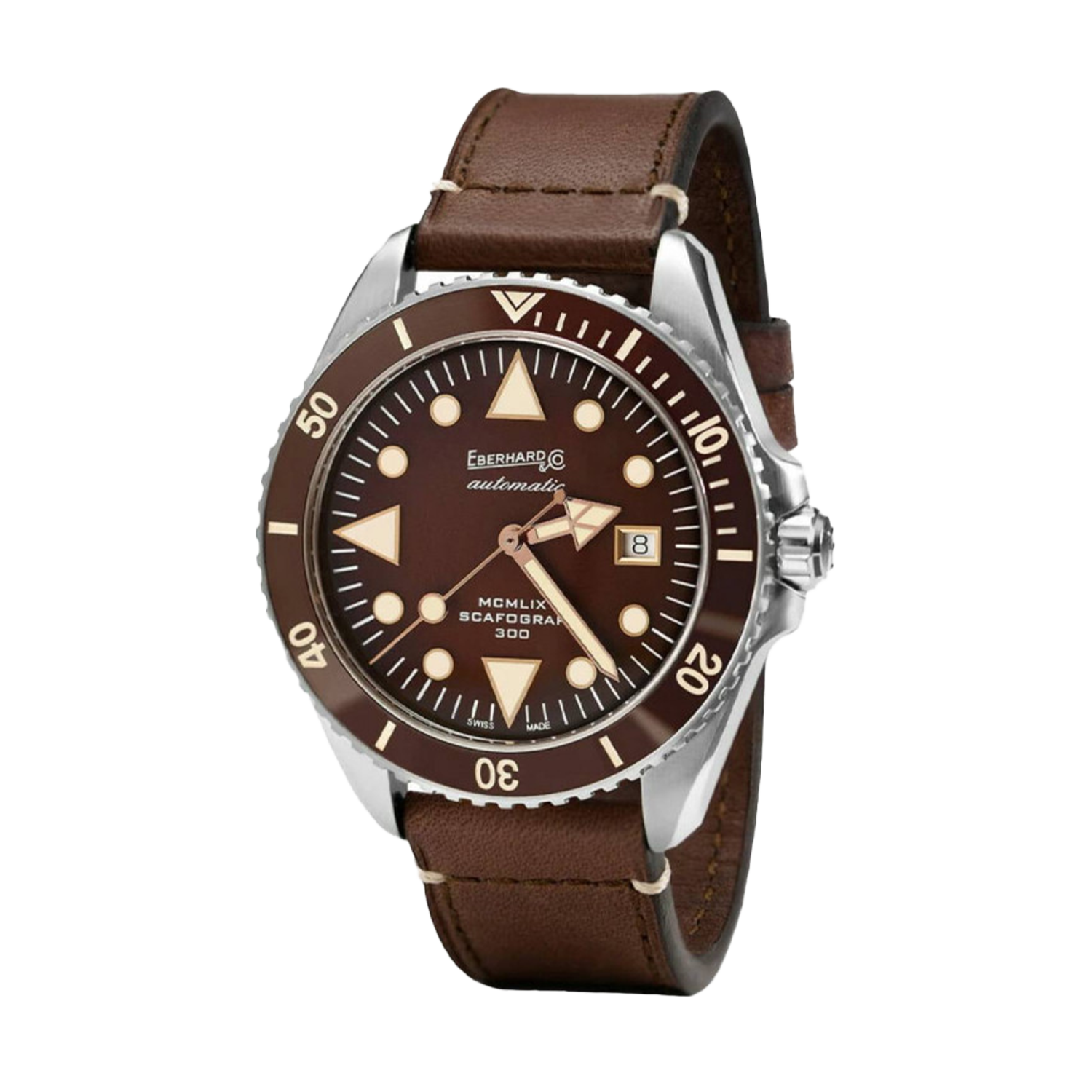 Em 1959 - MCMLIX em numeração romana - a Eberhard & Co. lançou o primeiro Scafograf, revolucionando a relojoaria de mergulho com características técnicas inéditas para a época. O que começou como Scafograf 100 evoluiu progressivamente até o lendário Scafograf 1000, estabelecendo a marca como referência mundial em instrumentos de mergulho profissional.