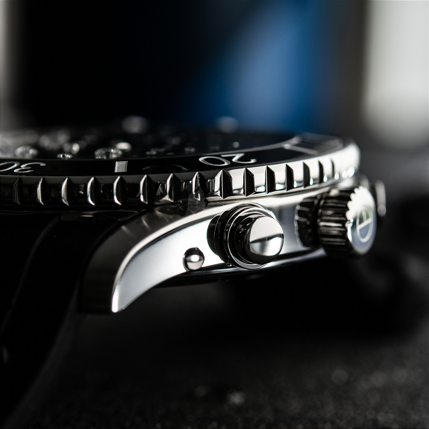 Com um movimento de quartzo suíço Ronda, caixa robusta de aço inoxidável e resistência à água de 200 metros, este modelo é construído para quem busca aventura sem abrir mão da elegância.