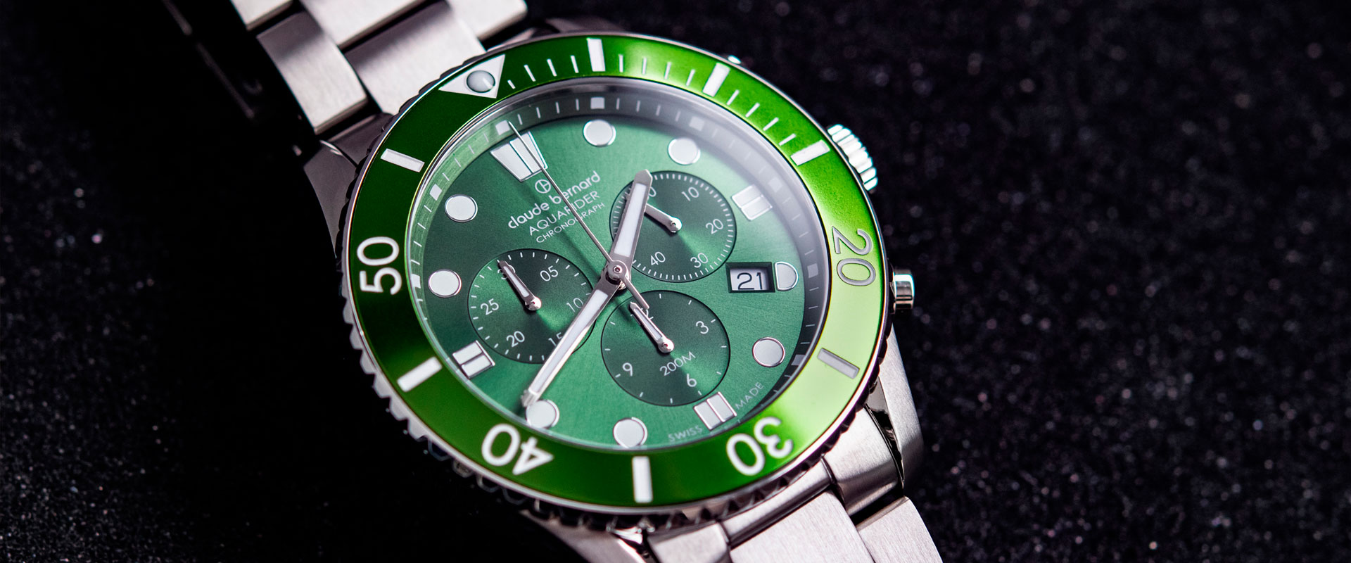 O Claude Bernard Aquarider Chronograph é um relógio esportivo e elegante que combina os códigos do mergulho com a precisão da relojoaria suíça.