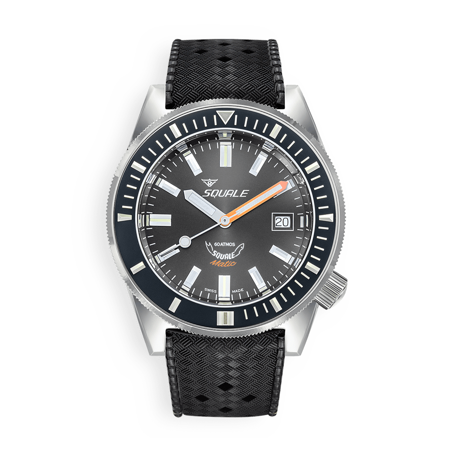 O Squale Matic Grey Rubber representa a evolução contemporânea dos relógios de mergulho italianos, combinando o robusto calibre automático Sellita SW 200-1 com um mostrador cinza refinado e pulseira de borracha premium. Com caixa de 44mm em aço 316L polido e resistência de 60 ATM, este diver oferece performance profissional com elegância urbana distintiva.