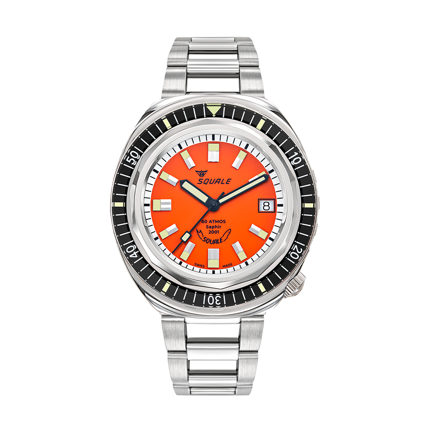 O Squale 2001 Reverse Orange redefine o conceito de diver clássico com sua combinação única de mostrador laranja vibrante e caixa de 40mm em aço 316L. Inspirado na tradição italiana de mergulho profissional, este modelo combina a robustez técnica necessária para 60 ATM com a elegância urbana que tornou a linha 2001 um ícone. O bezel bidirecional com inserção preta oferece contraste perfeito com o mostrador laranja, criando uma identidade visual marcante.