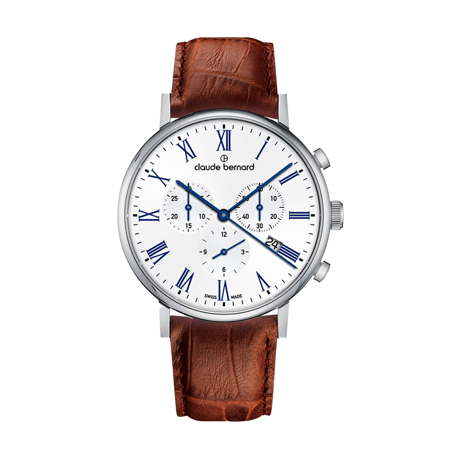 Um clássico entre os clássicos, este cronógrafo atemporal da Claude Bernard cativa pelo seu design harmonioso, mostrador discreto com ponteiros delicados e marcadores de horas simples.