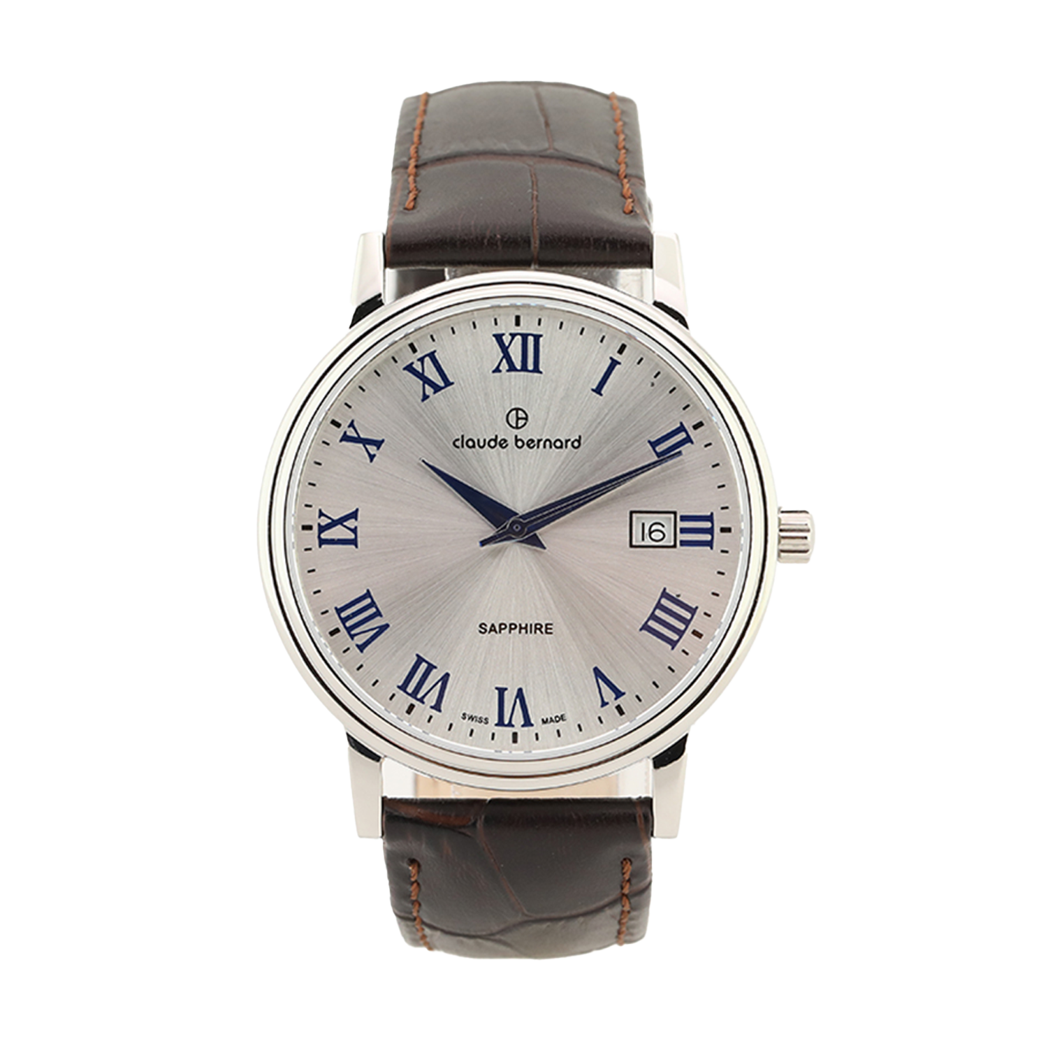 O Claude Bernard Classic Date 39mm representa a relojoaria suíça em sua expressão mais tradicional e refinada. Com mostrador prateado que captura a luz de forma elegante e janela de data discreta às 3 horas, este relógio combina funcionalidade prática com estética clássica intemporal. A caixa de 39mm em aço inoxidável e o perfil de apenas 8mm garantem presença no pulso sem exageros.