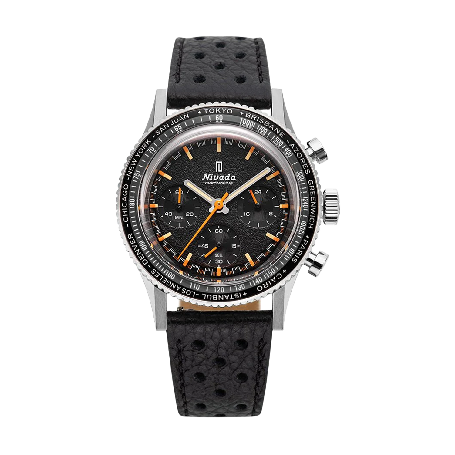A pulseira racing em couro premium com perfurações estratégicas não é apenas estética - é funcionalidade pura. Desenvolvida para máxima respirabilidade durante sessões intensas, oferece aderência superior e conforto prolongado mesmo sob stress. O mostrador texturizado preto mate com índices laranja vibrantes e trilha de minutos rally style completam a identidade racing autêntica, tornando este Chronoking a escolha definitiva para quem vive e respira velocidade.