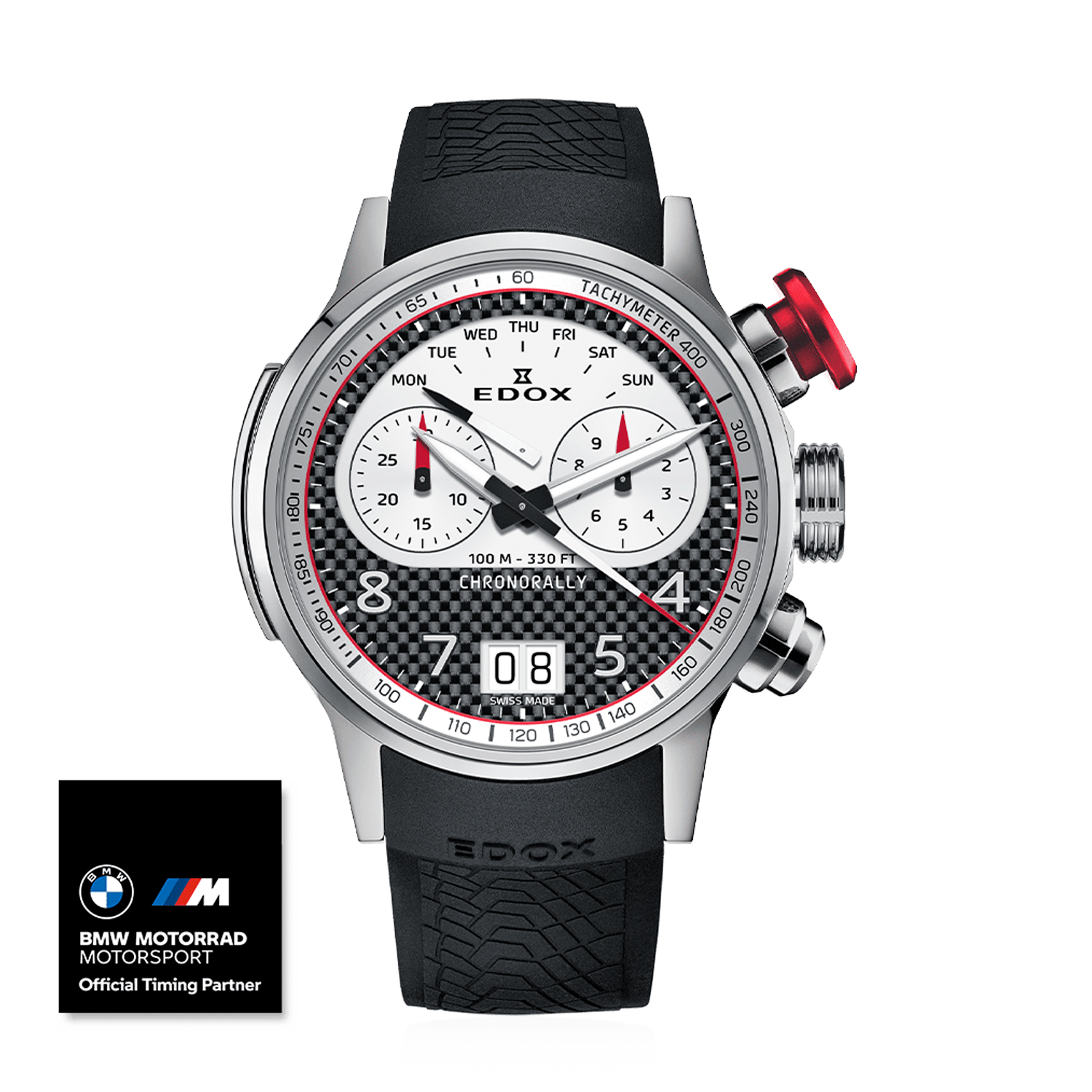 Parceiro oficial da BMW MOTORRAD WorldSBK Team, o Chronorally Chronograph 45 Limited Edition materializa décadas de herança na cronometragem esportiva. Com caixa de titânio ultra-leve e resistente, este cronógrafo de edição limitada (600 peças) combina a precisão suíça com o DNA do motorsport, oferecendo pushers oversized para máximo grip mesmo com luvas de condução.