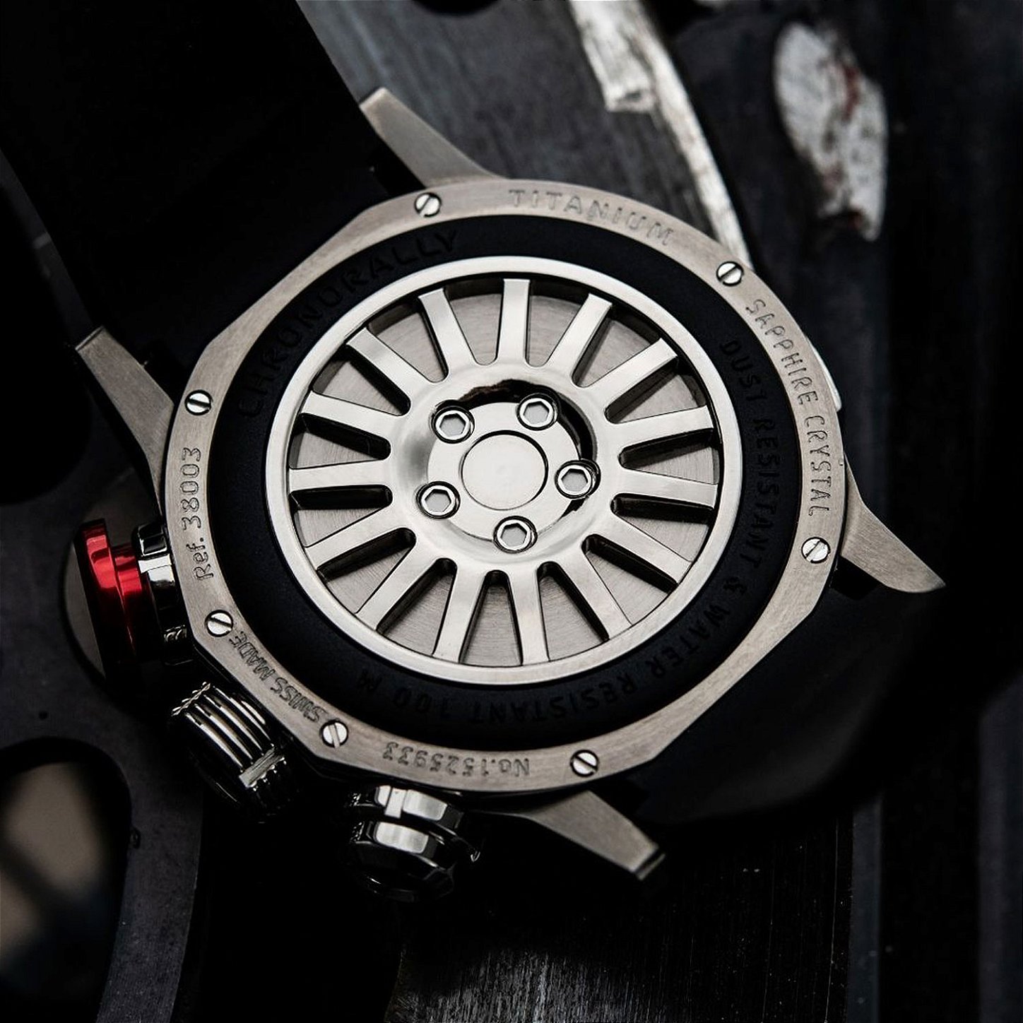 Desenvolvido para os mestres do motorsport, o Edox Chronorally Chronograph 45 combina a tradição suíça de cronometragem de precisão com a robustez exigida nas pistas. Sua caixa de titânio de 45mm e pusher cronógrafo oversized foram projetados para uso com luvas de piloto, enquanto o mostrador preto com ponteiros contrastantes garante legibilidade máxima em alta velocidade.