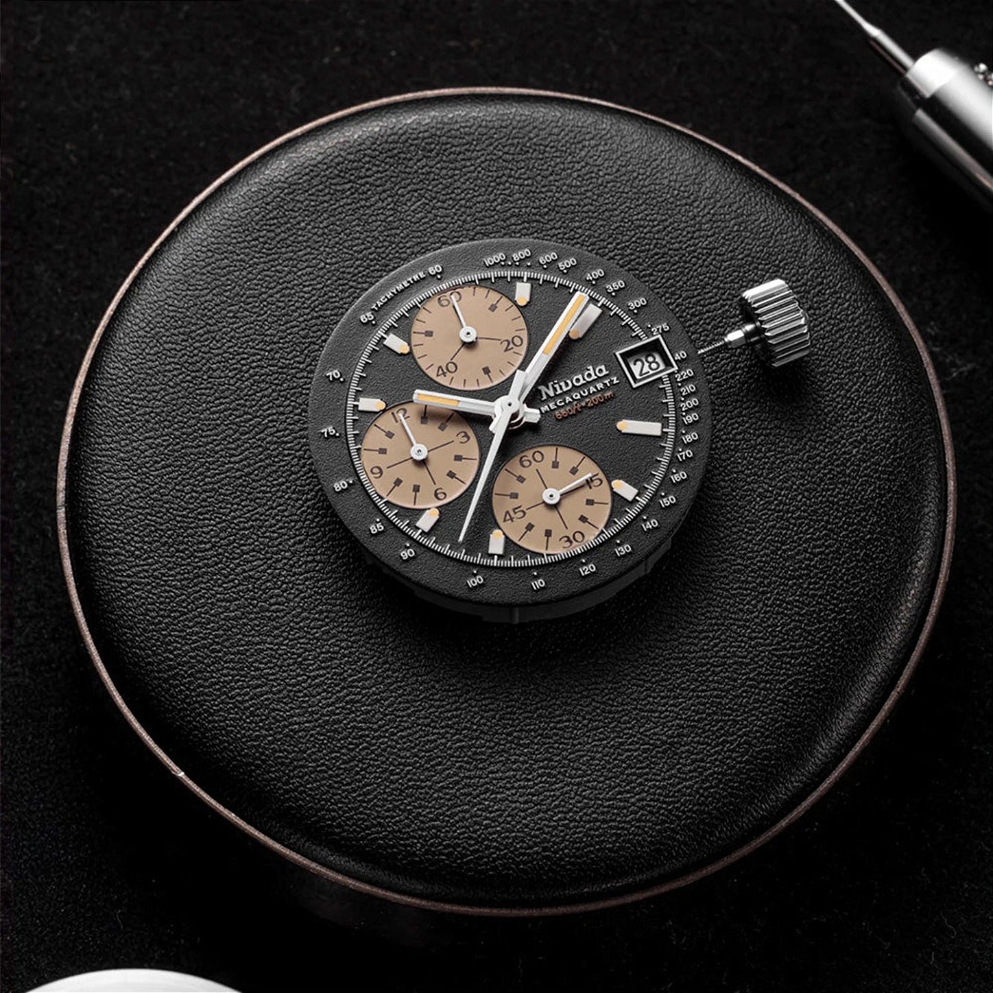 Esta dualidade tecnológica oferece o melhor dos dois mundos: a confiabilidade e precisão do quartzo para o uso diário, combinada com a experiência tátil e visual que só a mecânica tradicional pode proporcionar. O Autochron não é apenas um cronógrafo - é uma ponte entre a tradição relojoeira e a inovação contemporânea, mantendo viva a essência de uma época áurea da Nivada Grenchen.