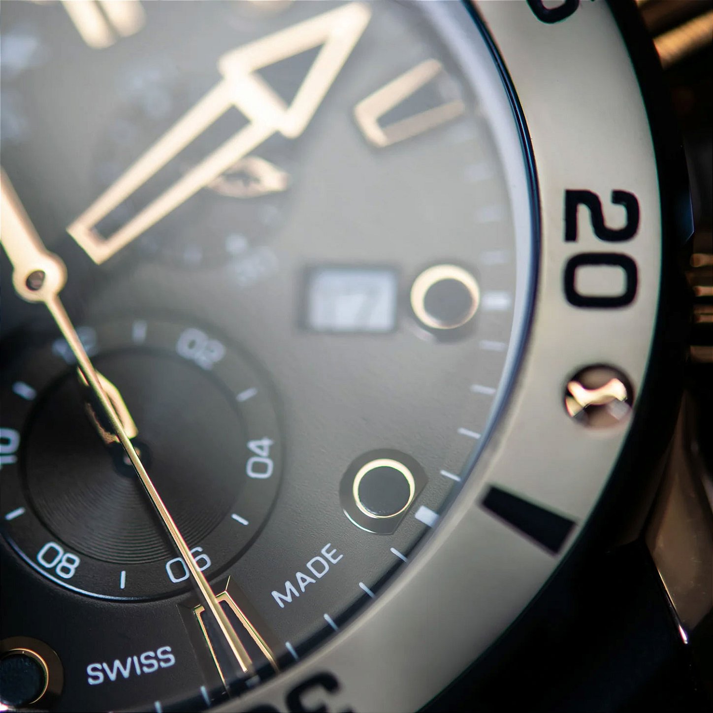 Cronógrafo diver de performance extrema para mergulho profissional, expedições aquáticas e atividades náuticas de alto nível. Perfeito para mergulhadores técnicos, profissionais navais, aventureiros aquáticos e entusiastas que valorizam engenharia suíça sem compromissos. Ideal para quem vive intensamente os oceanos - combina com neoprene técnico, equipamentos de mergulho profissional, casual náutico premium e o lifestyle de quem desafia as profundezas com total confiança na precisão suíça.