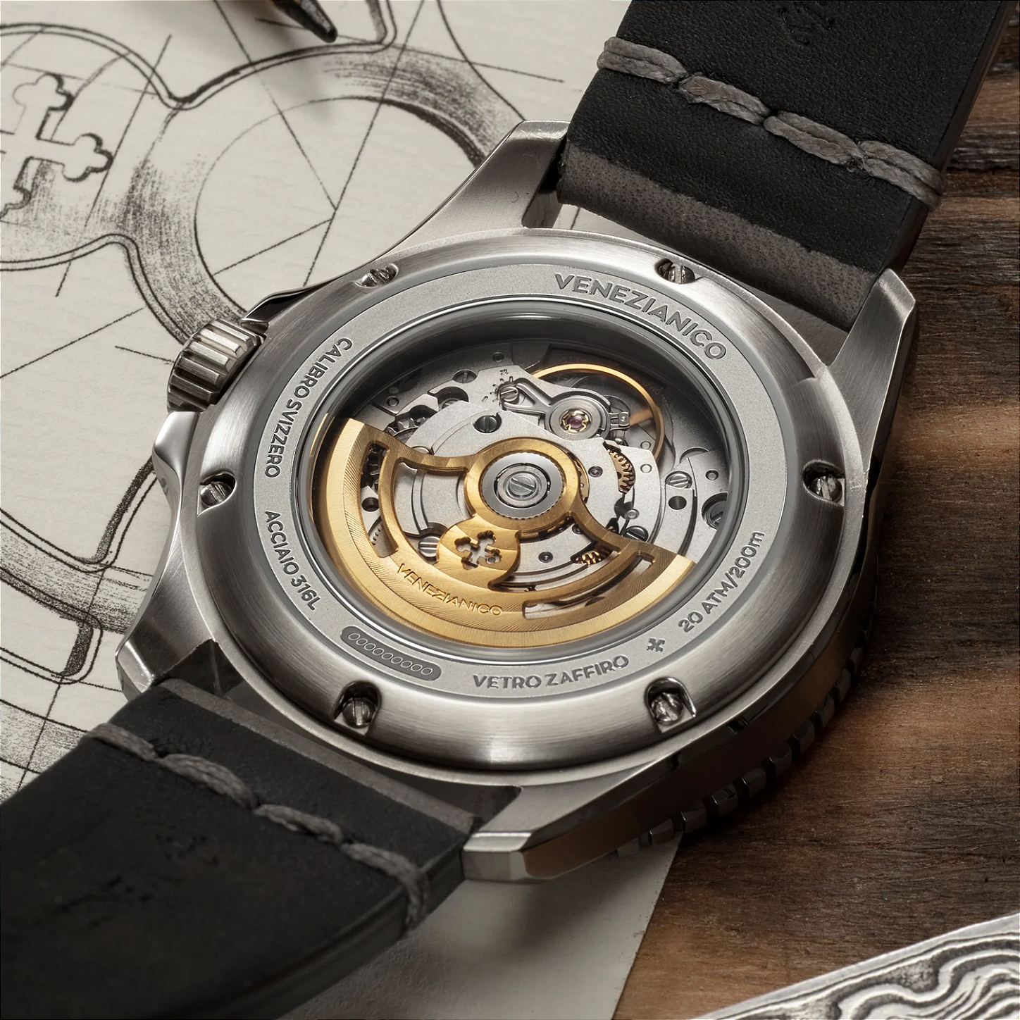 Combinando performance técnica e elegância artesanal, este diver é perfeito para atividades aquáticas profissionais, uso corporativo sofisticado e fins de semana elegantes. Ideal para colecionadores que valorizam manufatura premium e exclusividade - vai bem com blazer náutico, camisa social, polo elegante e o lifestyle de quem aprecia tradição naval veneziana.
