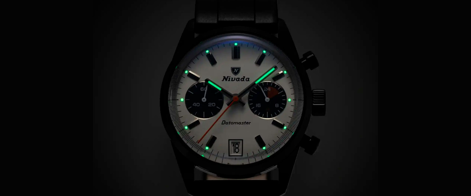 PROPORÇÕES AUTÊNTICAS: enquanto movimentos mecânicos modernos tornam impossível criar cronógrafos verdadeiramente compactos sem aumentar drasticamente a espessura, a tecnologia mecaquartz permitiu à Nivada reproduzir as dimensões exatas do Datomaster original de 1960. São apenas 12mm de altura total em uma caixa de 36mm - uma façanha dimensional que honra o passado sem sacrificar a usabilidade.
