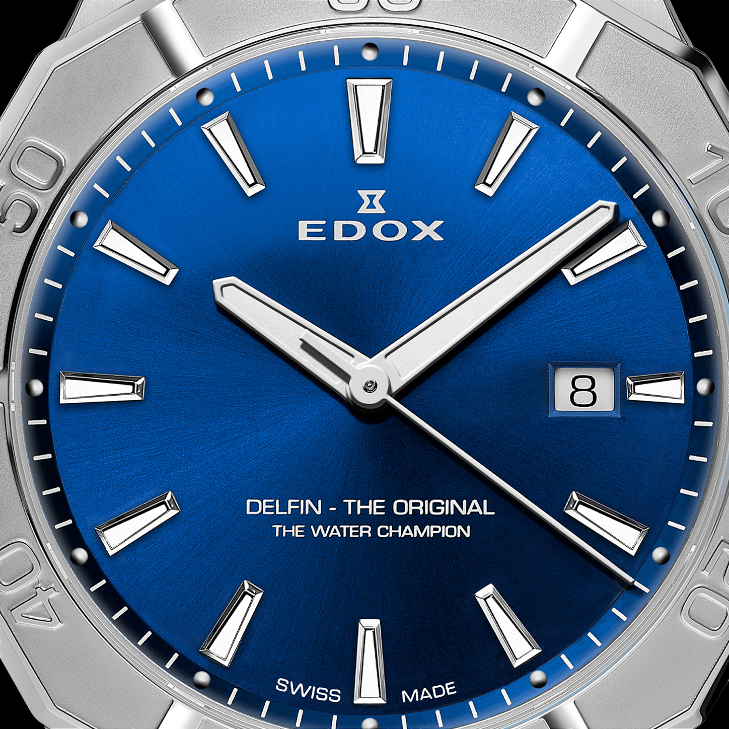 Em 1961, o primeiro Delfin conquistou o título de relógio com maior resistência à água do mundo, estabelecendo a Edox como referência em relojoaria aquática. Esta conquista não foi acidental - representou anos de pesquisa em vedação, materiais e engenharia de precisão na manufactura suíça de Les Genevez.