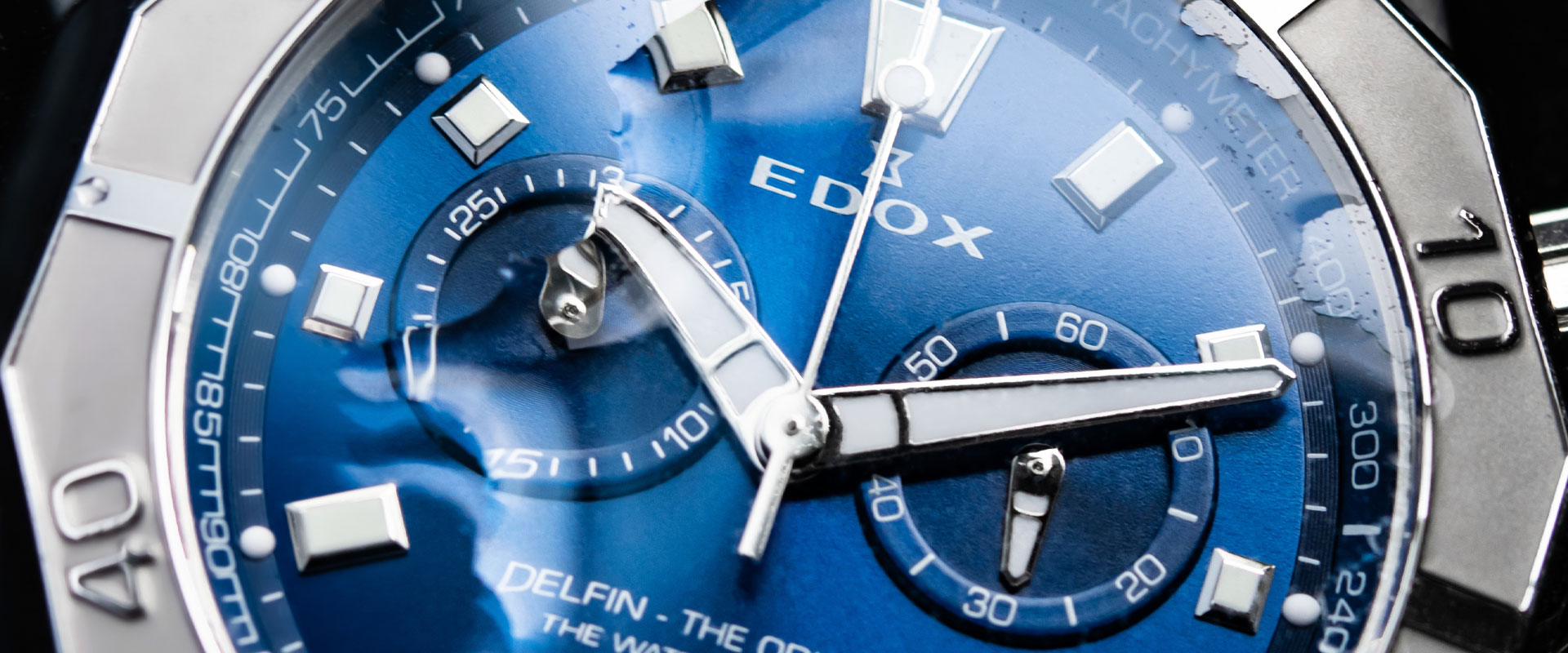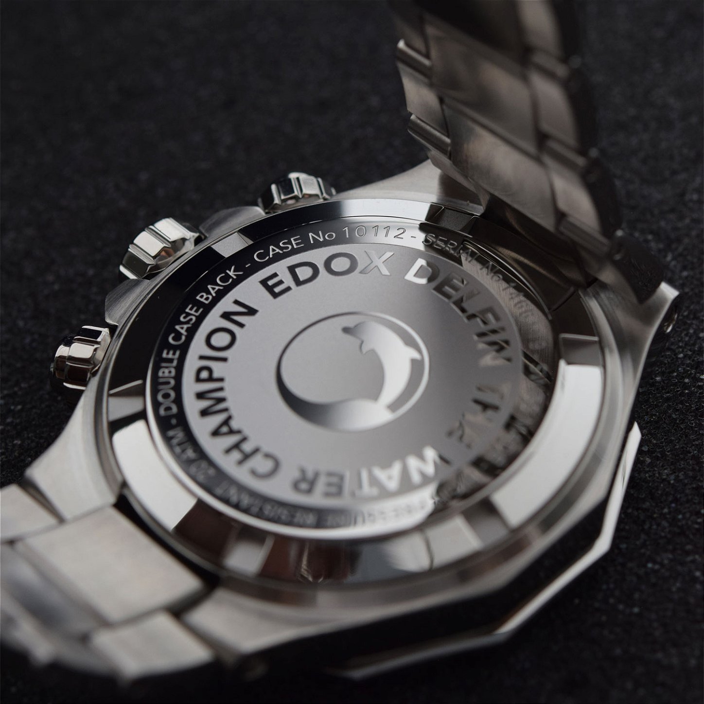 DUPLA VEDAÇÃO O'RING: sistema exclusivo Edox desenvolvido desde os anos 70 para garantir resistência superior à pressão aquática. As coroas e pulsadores rosqueáveis com dupla vedação O'ring permitem funcionalidade cronográfica mesmo submerso, tecnologia pioneira que estabeleceu a Edox como referência em cronometragem subaquática.