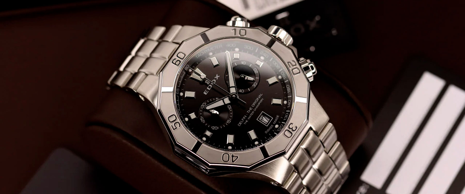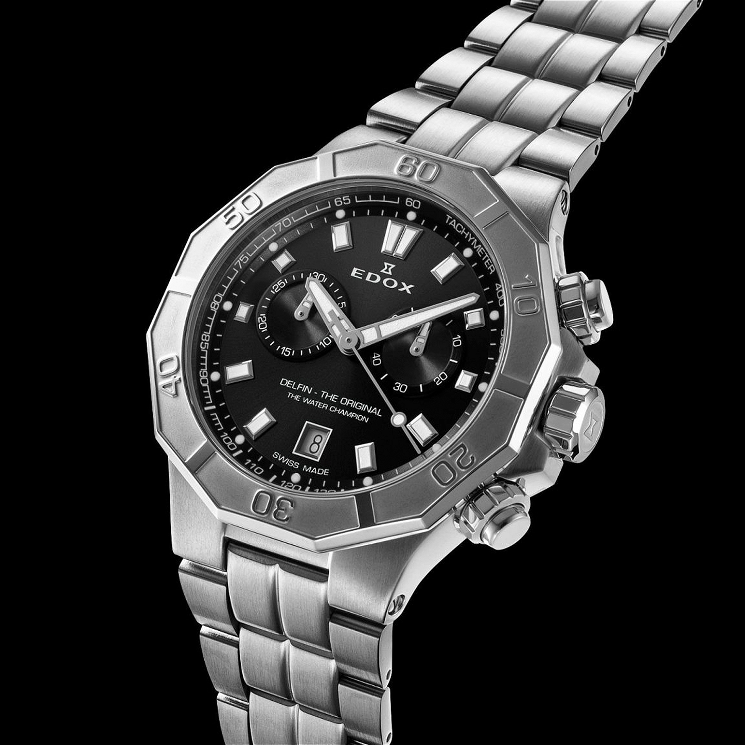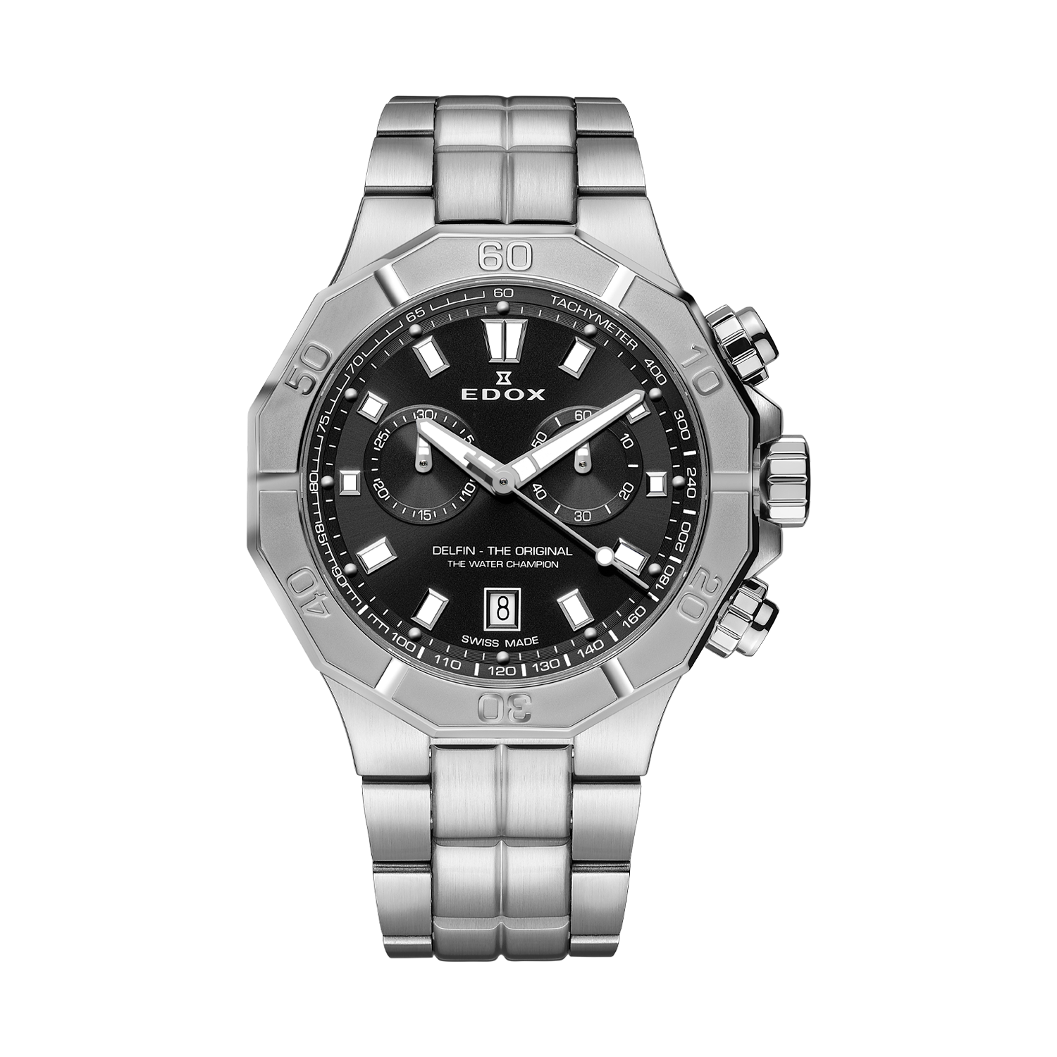 Inspirado na herança naval suíça desde 1884, o Edox Delfin Chronograph 10113-3M-NIN une tradição relojoeira e tecnologia de mergulho profissional. Com mostrador negro profundo e luneta unidirecional, este cronógrafo de 43mm carrega o DNA dos mestres cronometristas da Edox, combinando resistência de 20 ATM com a precisão do movimento suíço Ronda 5021.D.