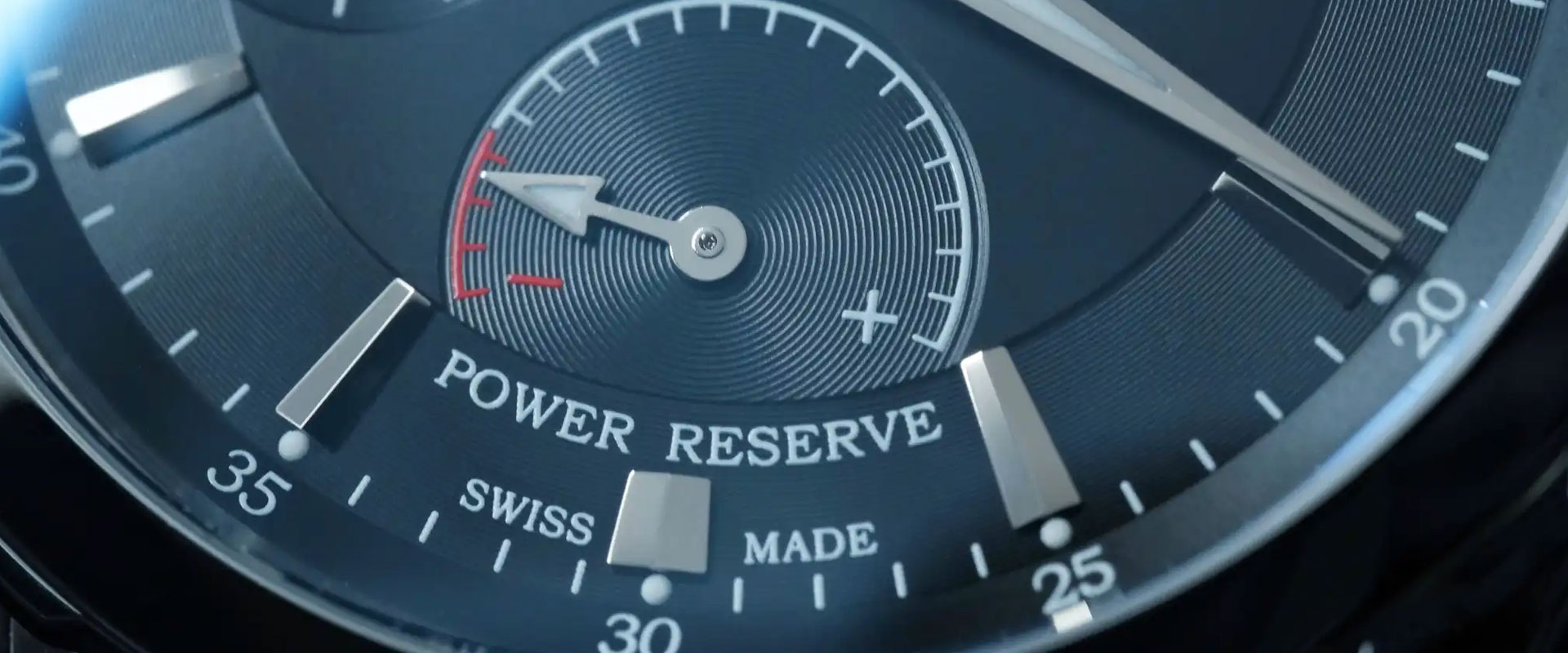 Ponteiro das horas, ponteiro dos minutos, ponteiro dos segundos, cronógrafo com medição de até 12 horas e calendário perpétuo com indicação do dia do mês às 3 horas. A função cronógrafo permite cronometrar intervalos precisos para atividades esportivas e profissionais, enquanto o calendário elimina a necessidade de consultar outros dispositivos para verificar a data.