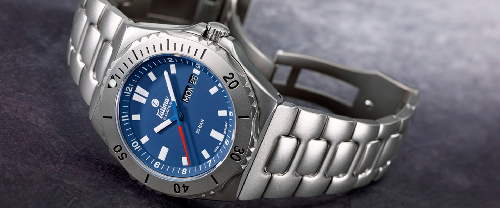 Desde 1927, Tutima representa o que há de mais refinado na relojoaria alemã. Nascida em Glashütte, a marca ganhou renome mundial ao equipar pilotos da NATO e Luftwaffe com chronographos que salvaram vidas em situações extremas. O Seven Seas carrega este DNA de confiabilidade absoluta para o ambiente marinho.