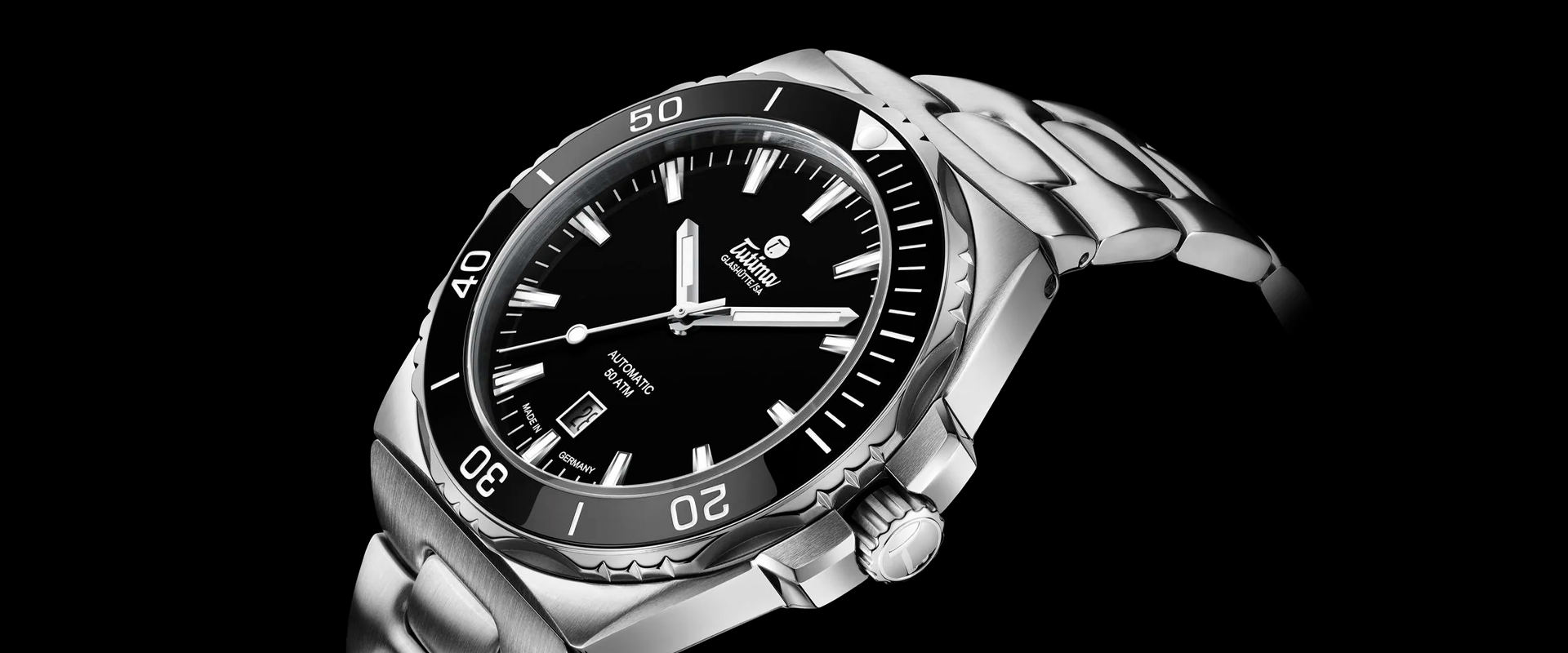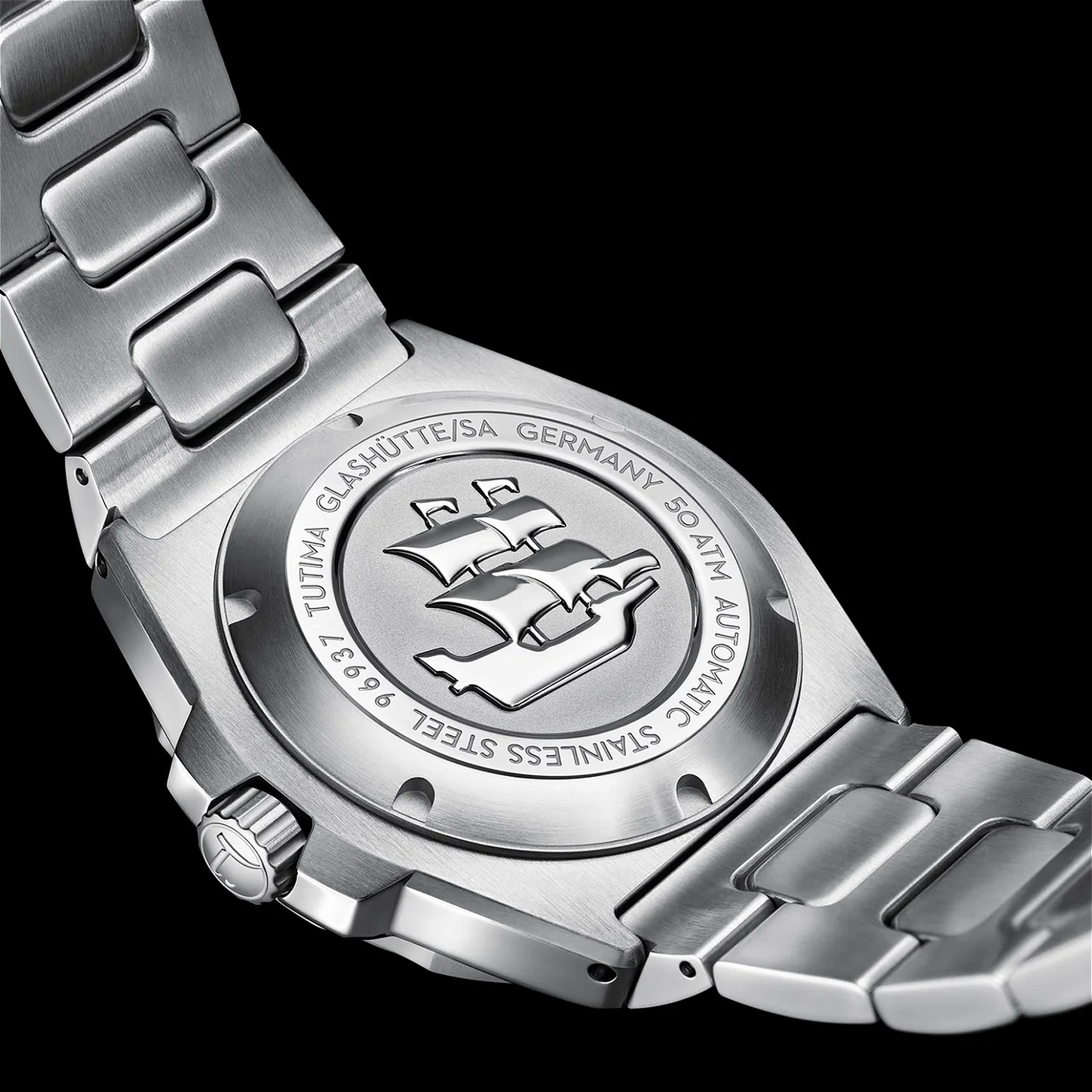 Com caixa em aço inoxidável escovado e cristal de safira antirreflexo, o Seven Seas S mantém a filosofia "tutus" (seguro, protegido) da marca alemã. A pulseira de aço integrada com fecho dobrável, rotor com selo dourado e reserva de marcha de 38 horas completam este instrumento de precisão desenvolvido para quem não aceita compromissos entre performance e confiabilidade.