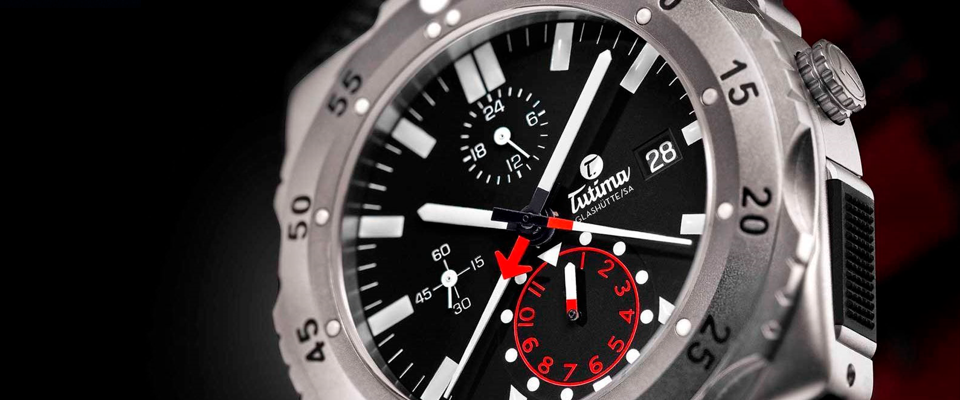 CRONÓGRAFO CENTRAL PATENTEADO: inovação exclusiva da Tutima que modifica o confiável ETA/Valjoux 7750 para oferecer ponteiros centrais de cronógrafo. Diferente dos subdials convencionais, os ponteiros de segundos e minutos cronometrados ocupam o centro do mostrador, permitindo leitura instantânea em todo o raio - crucial para operações onde cada segundo conta.