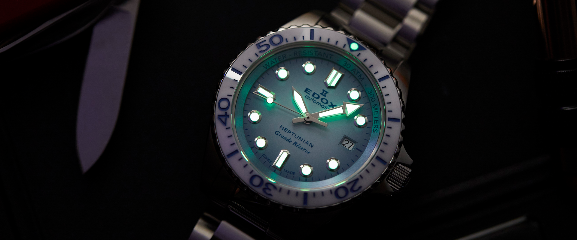 Em 1973, a Edox criou o SkyDiver especialmente para uma unidade militar de elite, estabelecendo novos padrões de robustez e precisão em ambientes extremos. Cinco décadas depois, essa herança militar evolui no Neptunian Grande Réserve, que mantém a filosofia de resistência absoluta enquanto incorpora as mais avançadas tecnologias de relojoaria suíça.
