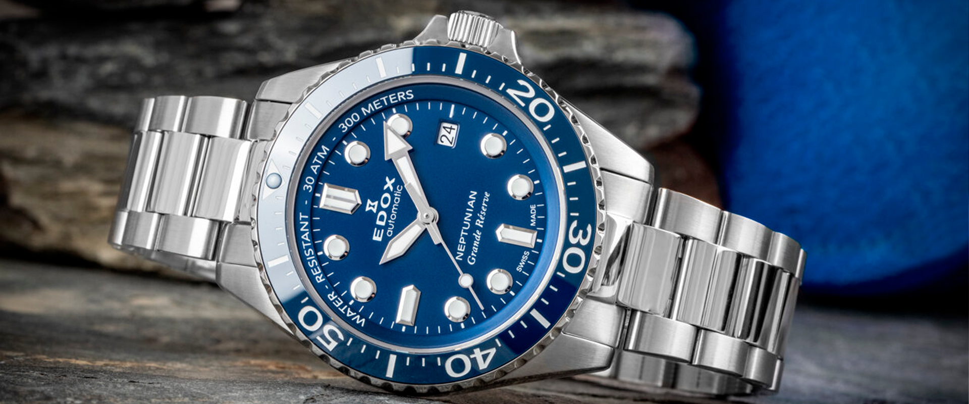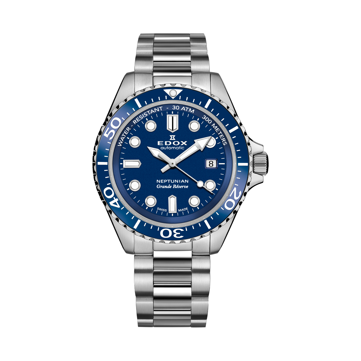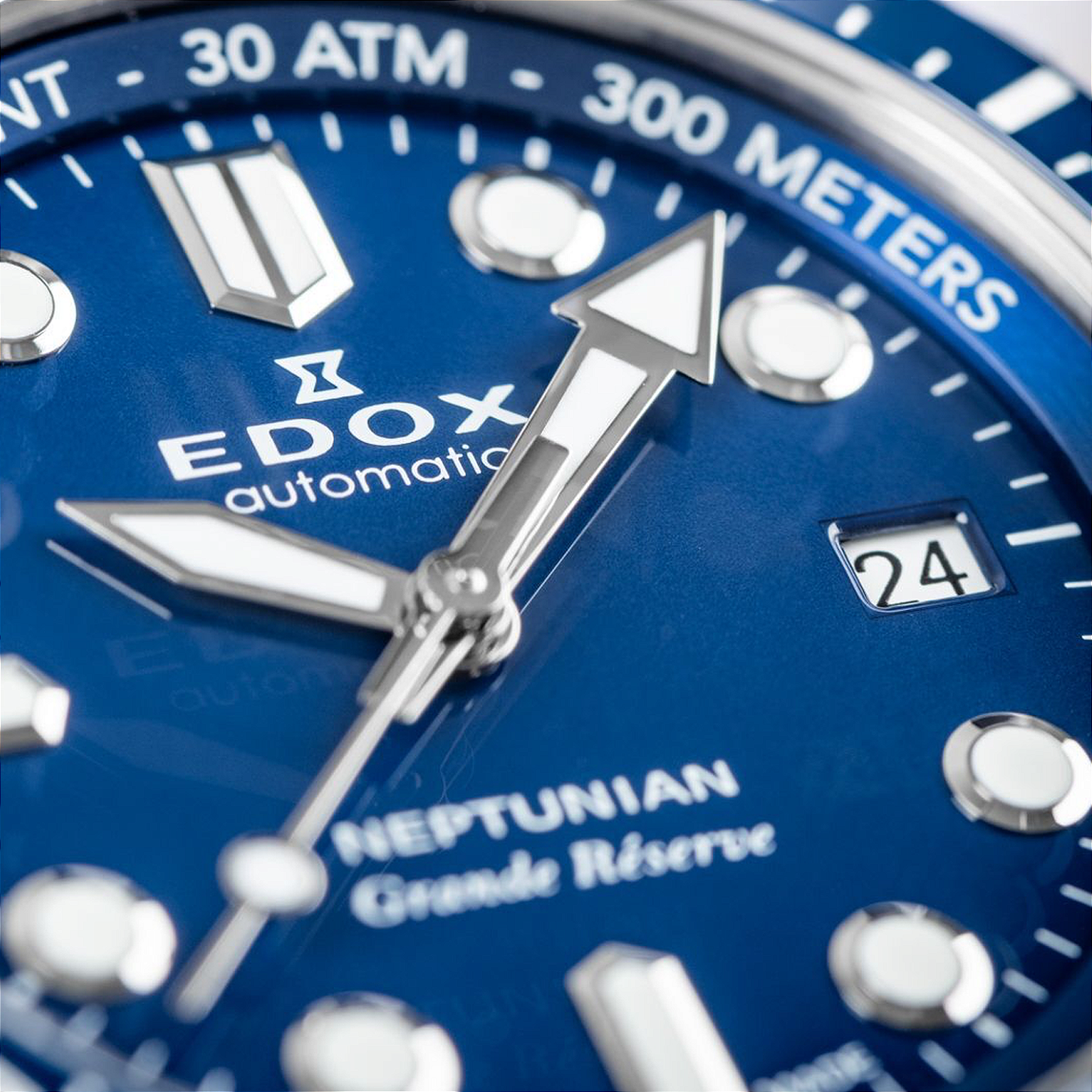 Em 1973, a Edox criou o SkyDiver para um coronel das forças especiais suíças que precisava de um relógio capaz de funcionar em terra, ar e água. Cinco décadas depois, o Neptunian Grande Réserve honra essa herança militar com tecnologia contemporânea, mantendo a robustez original enquanto adiciona o refinamento necessário para a vida urbana moderna.