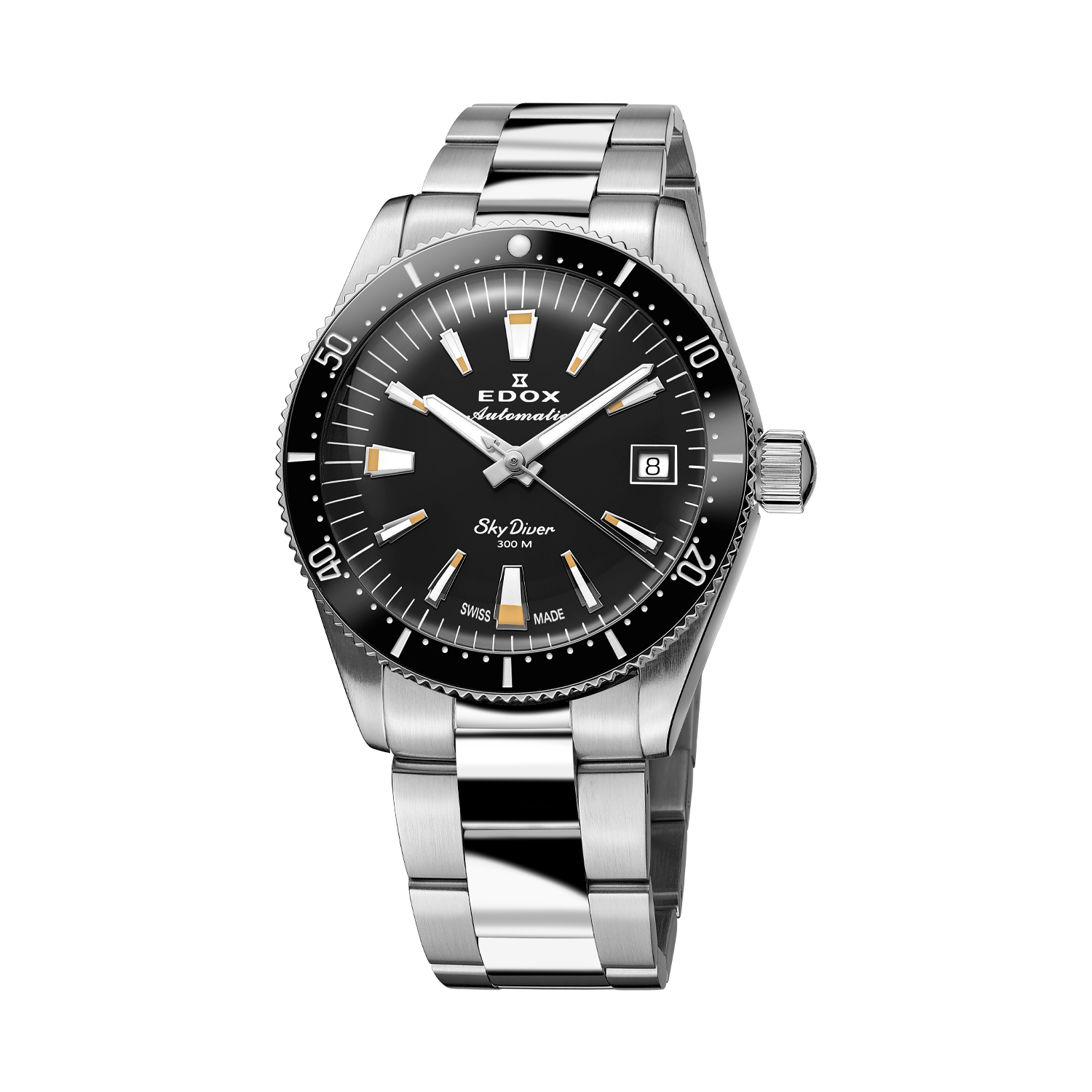 Equipado com movimento automático suíço Edox Cal. 80 (base Sellita SW200), cristal de safira antirrisco e resistência excepcional de 30 ATM, este diver compacto honra o legado dos aventureiros que conquistaram terra, mar e ar. A pulseira de aço inoxidável 316L com extensão inteligente e o acabamento fosco-polido fazem deste Skydiver uma escolha sofisticada para exploradores urbanos e aquáticos.
