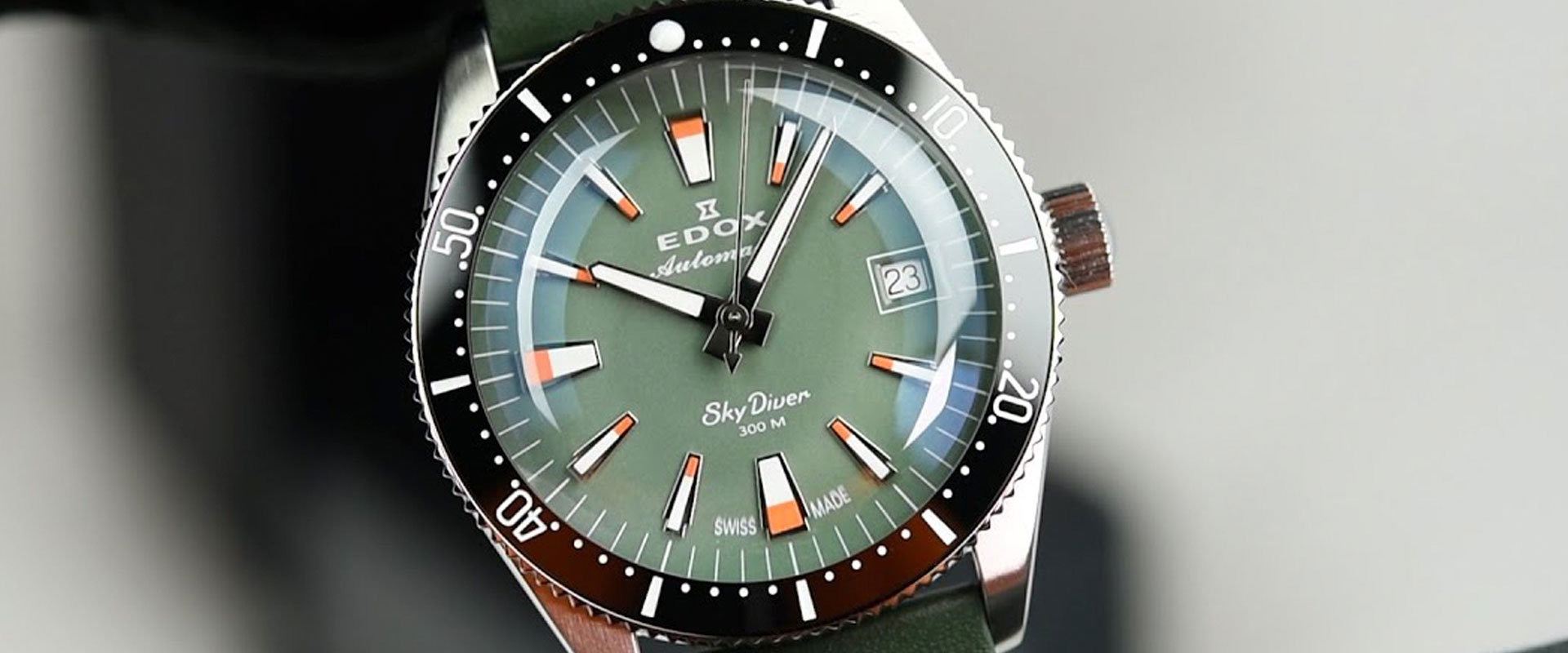 Tributário à tradição militar dos paraquedistas suíços, o Edox SkyDiver 38 Date Automatic combina o legado de mergulho profissional com dimensões contemporâneas de 38mm. Equipado com vidro safira abaulado, luneta cerâmica unidirecional e movimento automático Calibre 80 suíço, oferece resistência de 300 metros em um formato surpreendentemente elegante e versátil.