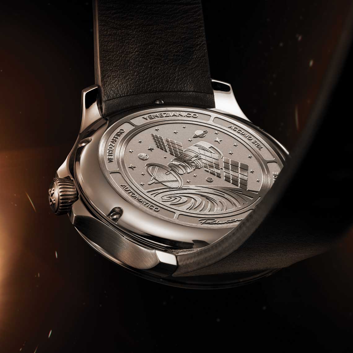O mostrador do Redentore Ultrablack utiliza a revolucionária tinta Musou Black™, reconhecida mundialmente por sua capacidade de absorver 99,4% da luz incidente. Desenvolvida no Japão pela Koyo Orient Japan Co Ltd, essa tinta representa o ápice da engenharia óptica aplicada ao design. Seu efeito cria uma superfície de preto absoluto, sem reflexos, que elimina qualquer percepção de profundidade e confere ao mostrador um aspecto visual quase irreal — como um “buraco de luz” dentro do relógio. Além do impacto estético incomparável, a Musou Black™ oferece durabilidade e estabilidade cromática, garantindo que o visual ultrablack do Redentore permaneça intacto mesmo com o uso contínuo. Essa escolha ousada reforça o compromisso da Venezianico com a inovação estética, elevando o conceito de minimalismo a um novo patamar.