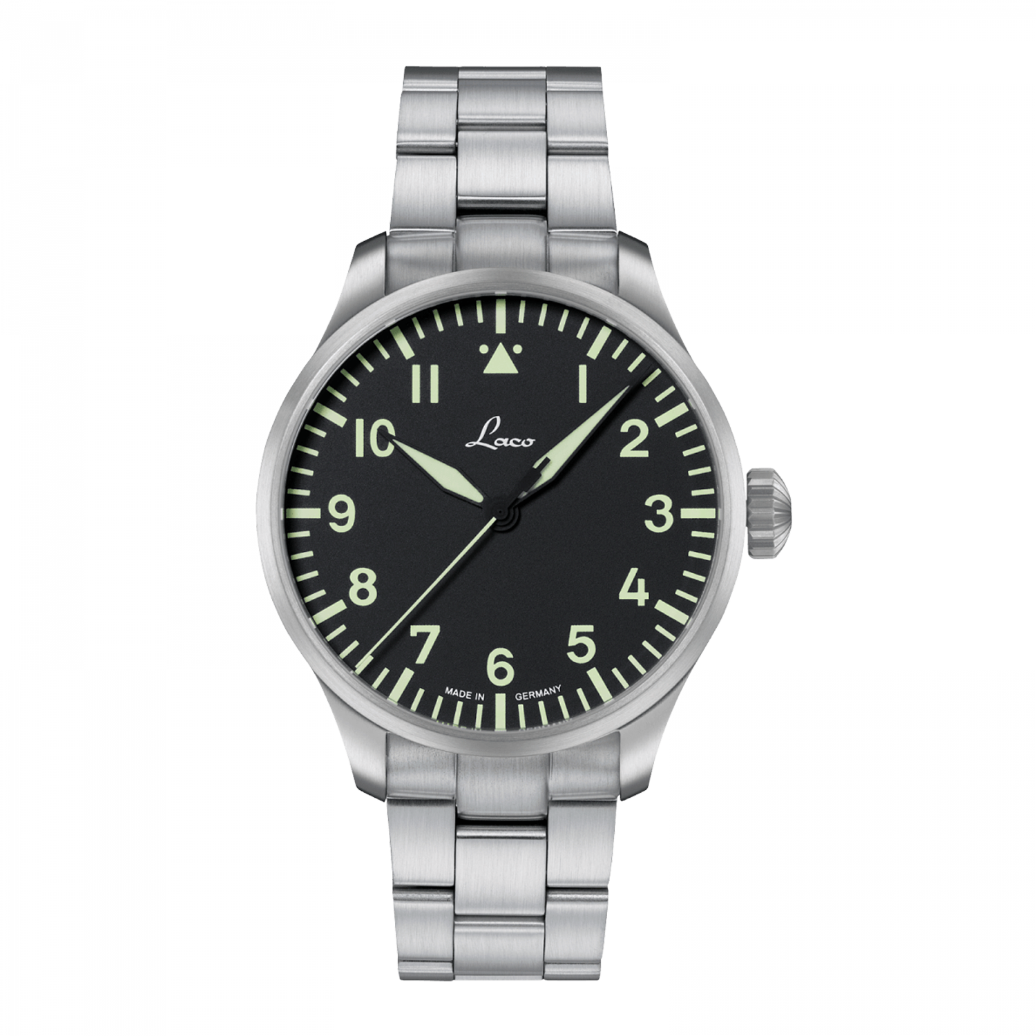 MANUFATURA HISTÓRICA: a Laco foi uma das cinco únicas empresas autorizadas a produzir relógios para pilotos da Luftwaffe nos anos 1940, ao lado de IWC, A. Lange & Söhne, Stowa e Wempe. Cada detalhe mantém fidelidade aos originais, desde o acabamento fosco até a ausência de logotipo no mostrador.