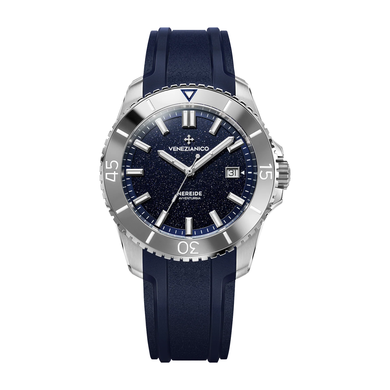 O Nereide Avventurina combina a tradição veneziana com materiais de valor excepcional, trazendo um mostrador em vidro de aventurina, uma técnica particular de processamento de vidro inventada em Veneza no século XVII e caracterizada por microinclusões de metal semelhantes a agulhas, que produzem uma infinidade de reflexos brilhantes, que lembram as estrelas no céu noturno.