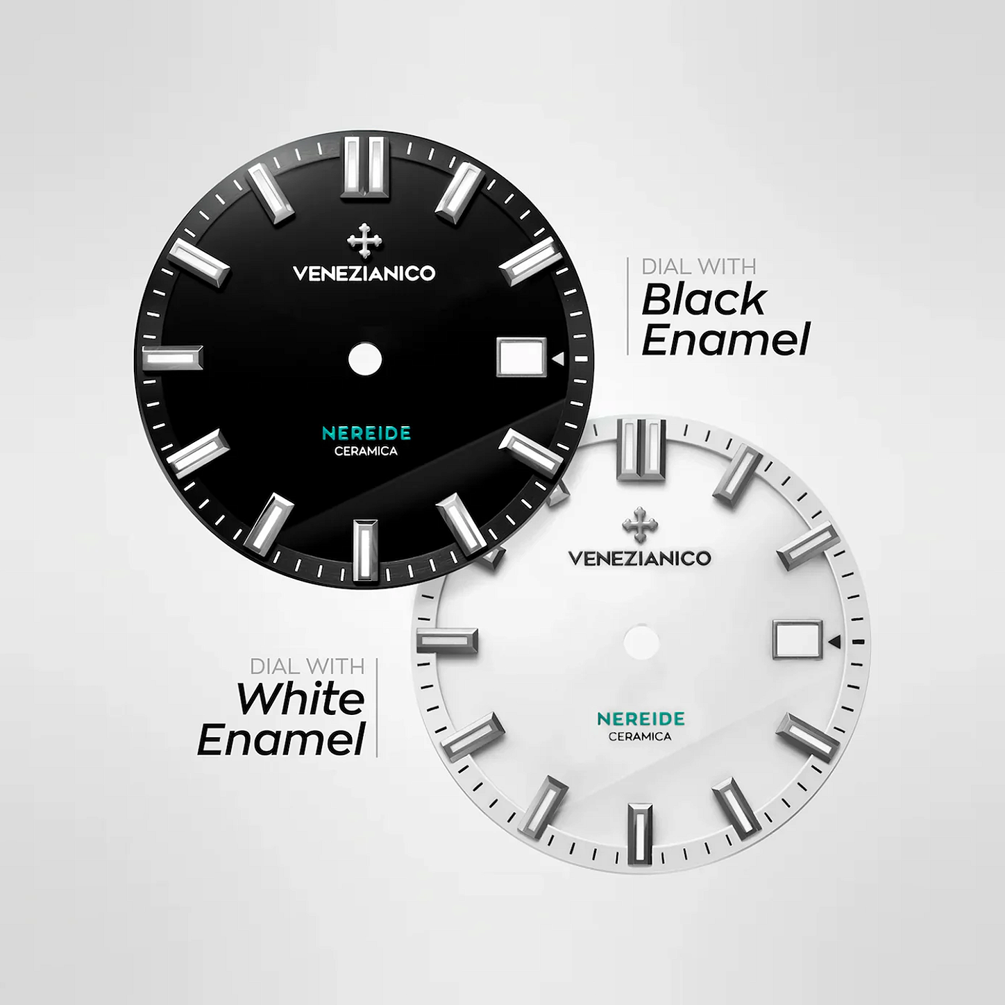 O mostrador do novo Nereide Ceramica se inspira na antiga arte veneziana do esmalte, um artesanato refinado que remonta à Idade Média. Essa técnica, historicamente usada para adornar joias e obras de arte, envolve a aplicação precisa de esmalte seguida de queima de alta temperatura. O resultado é um acabamento suave e brilhante que aumenta a durabilidade do mostrador enquanto incorpora uma beleza atemporal, homenageando uma rica herança cultural.