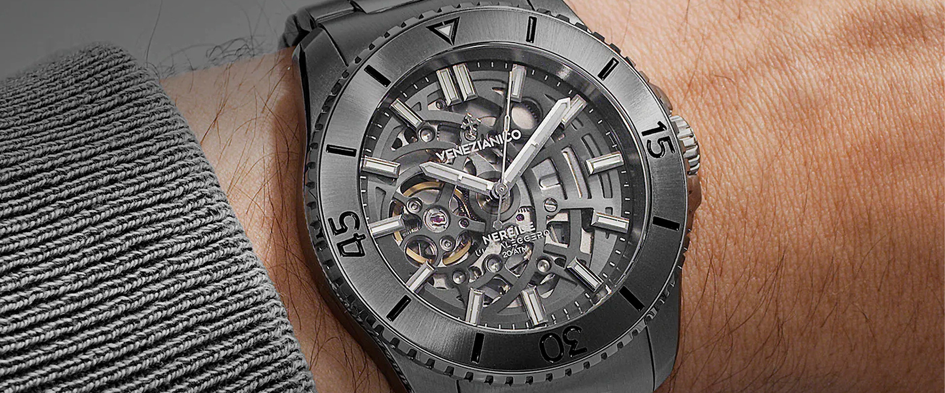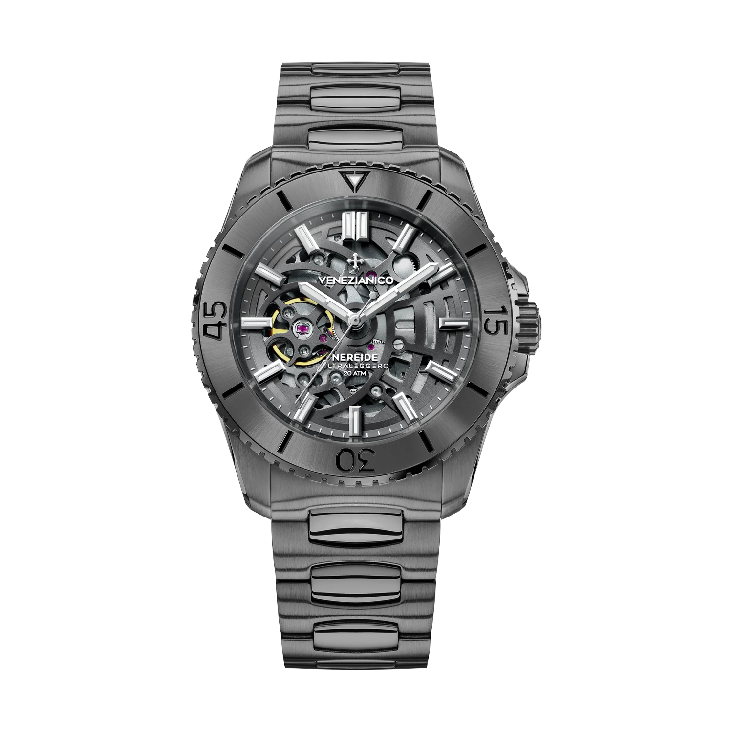 Nereide Ultraleggero é um relógio com uma identidade forte e uma alma esportiva. Possui um design refinado, enriquecido por uma alça em aço que segue harmoniosamente a forma da caixa, oferecendo conforto excepcional ao pulso, garantindo resistência superior à abrasão e variações extremas de temperatura, incluindo condições de -30°C a +70°C. Um relógio técnico com um design complexo e soluções patenteadas e de ponta. Seu estojo fluido garante um conforto excepcional, mesmo durante atividades dinâmicas. Combinando desempenho avançado com mecânica visível, o mostrador PMMA resistente a impactos adiciona um toque moderno e funcional.