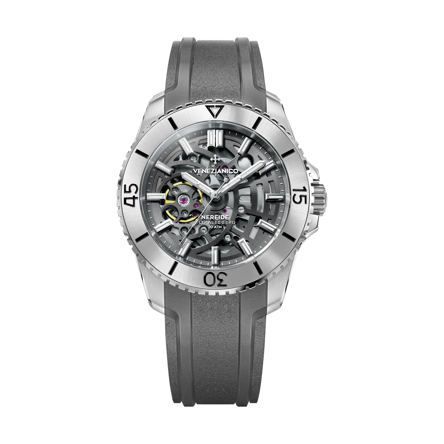 Nereide Ultraleggero é um relógio com uma identidade forte e uma alma esportiva. Possui um design refinado, enriquecido por uma alça em aço que segue harmoniosamente a forma da caixa, oferecendo conforto excepcional ao pulso, garantindo resistência superior à abrasão e variações extremas de temperatura, incluindo condições de -30°C a +70°C.