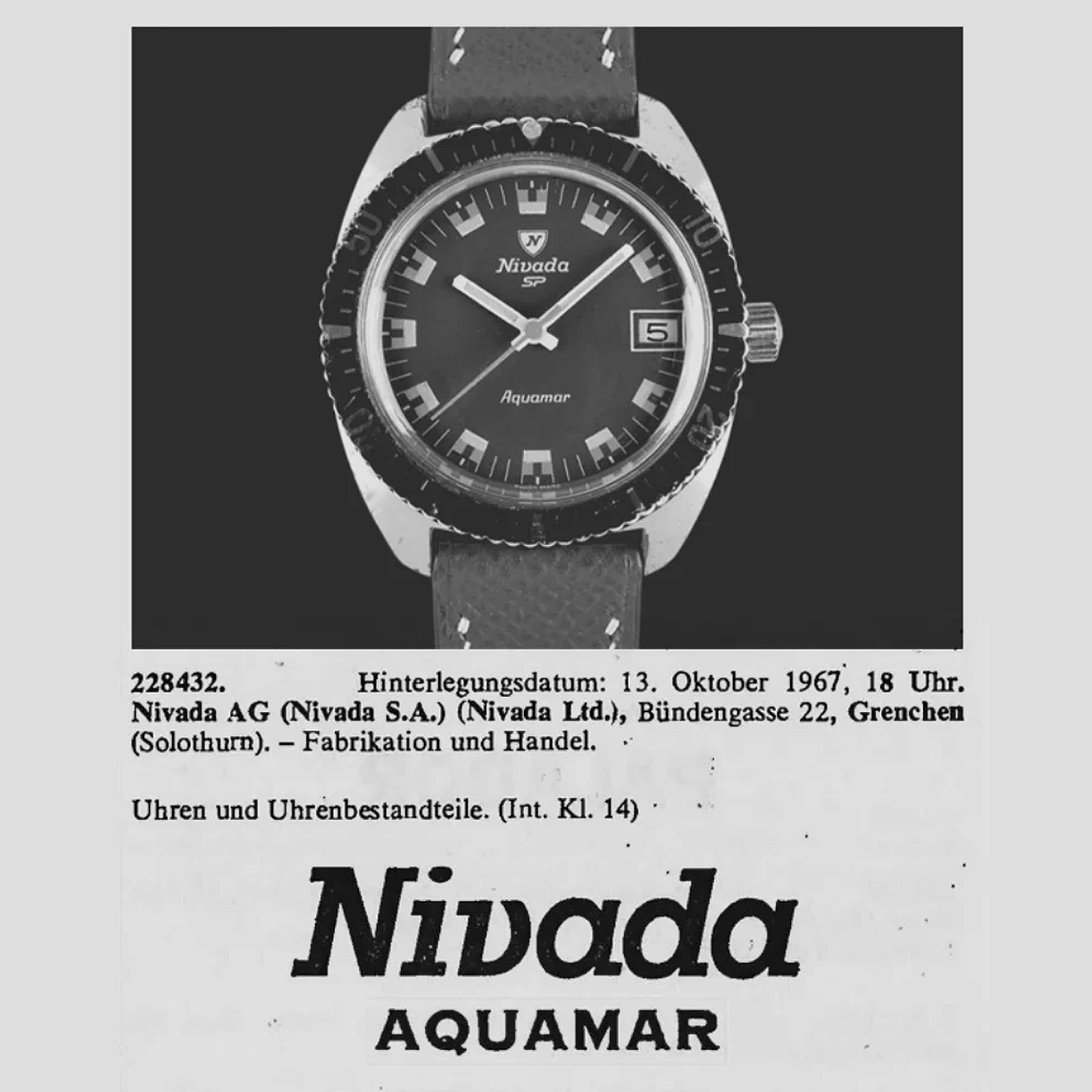 DESCOBERTA DE ARQUIVO: O mostrador do Aquamar Vintage não foi projetado do zero — foi encontrado. Guillaume Laidet descobriu os discos originais nos arquivos da Cenic, onde dormiam esquecidos por décadas. A Nivada Grenchen reativou esse patrimônio com fidelidade, preservando cada traço da identidade vintage original e combinando-o com construção contemporânea de alto nível.