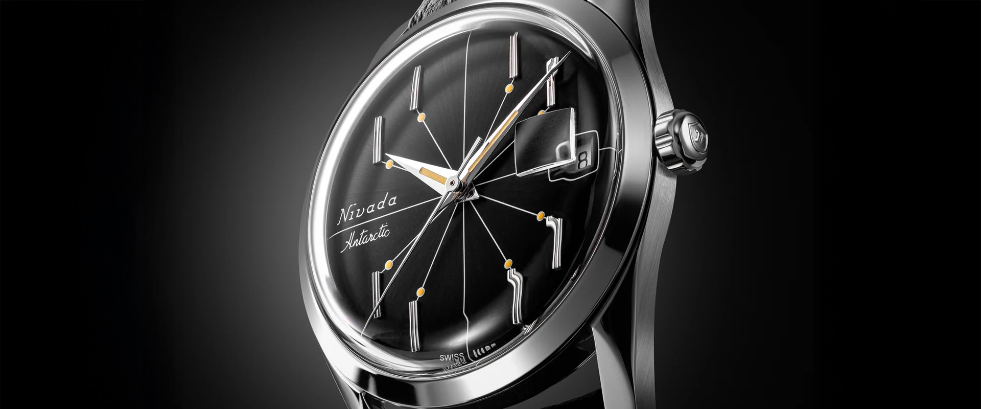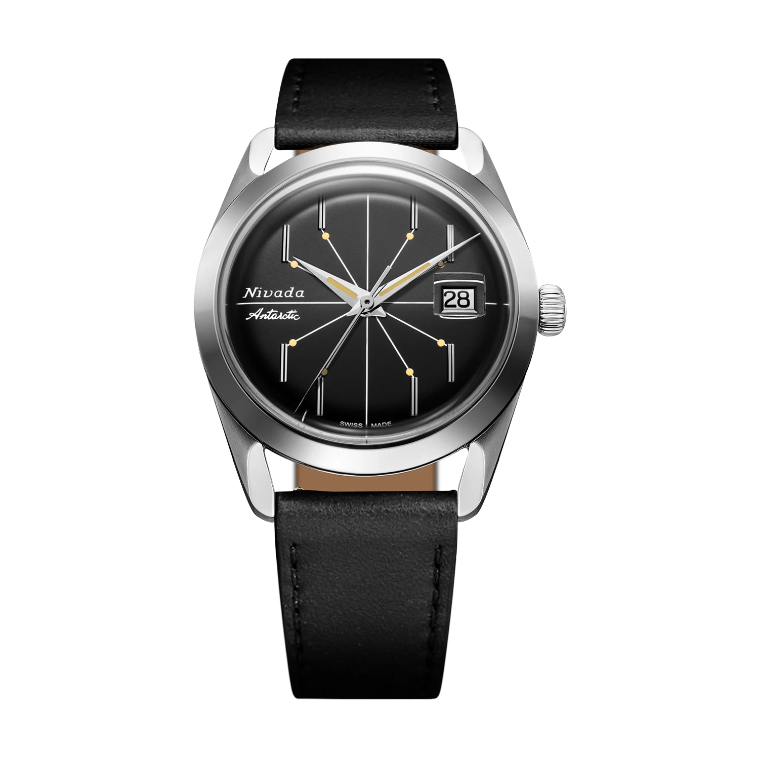 O Antarctic Spider Black 38 mm revive um dos designs mais distintos de meados do século da Nivada Grenchen, o famoso “Spider Dial” introduzido pela primeira vez na década de 1950. Esta edição preserva seu mostrador preto geométrico e marcadores luminosos, ao mesmo tempo em que apresenta uma caixa de 38 mm mais contemporânea para o uso diário perfeito.Fabricado na Suíça e construído em aço inoxidável 316L com cristal de safira, combina elegância atemporal com engenharia moderna durável. Uma verdadeira peça de colecionador, para aqueles que apreciam precisão, proporção e herança